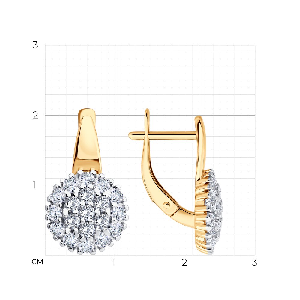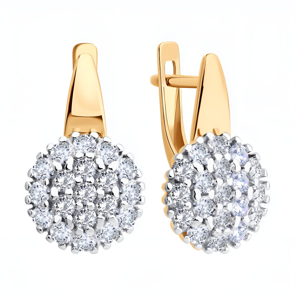 Серьги из серебра с позолотой и фианитами
