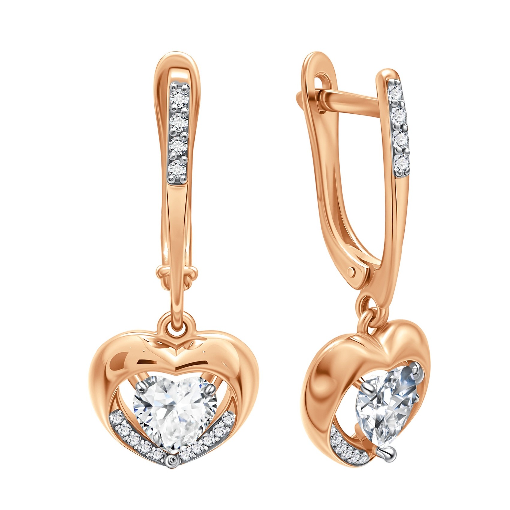 Серьги из серебра с позолотой и фианитами