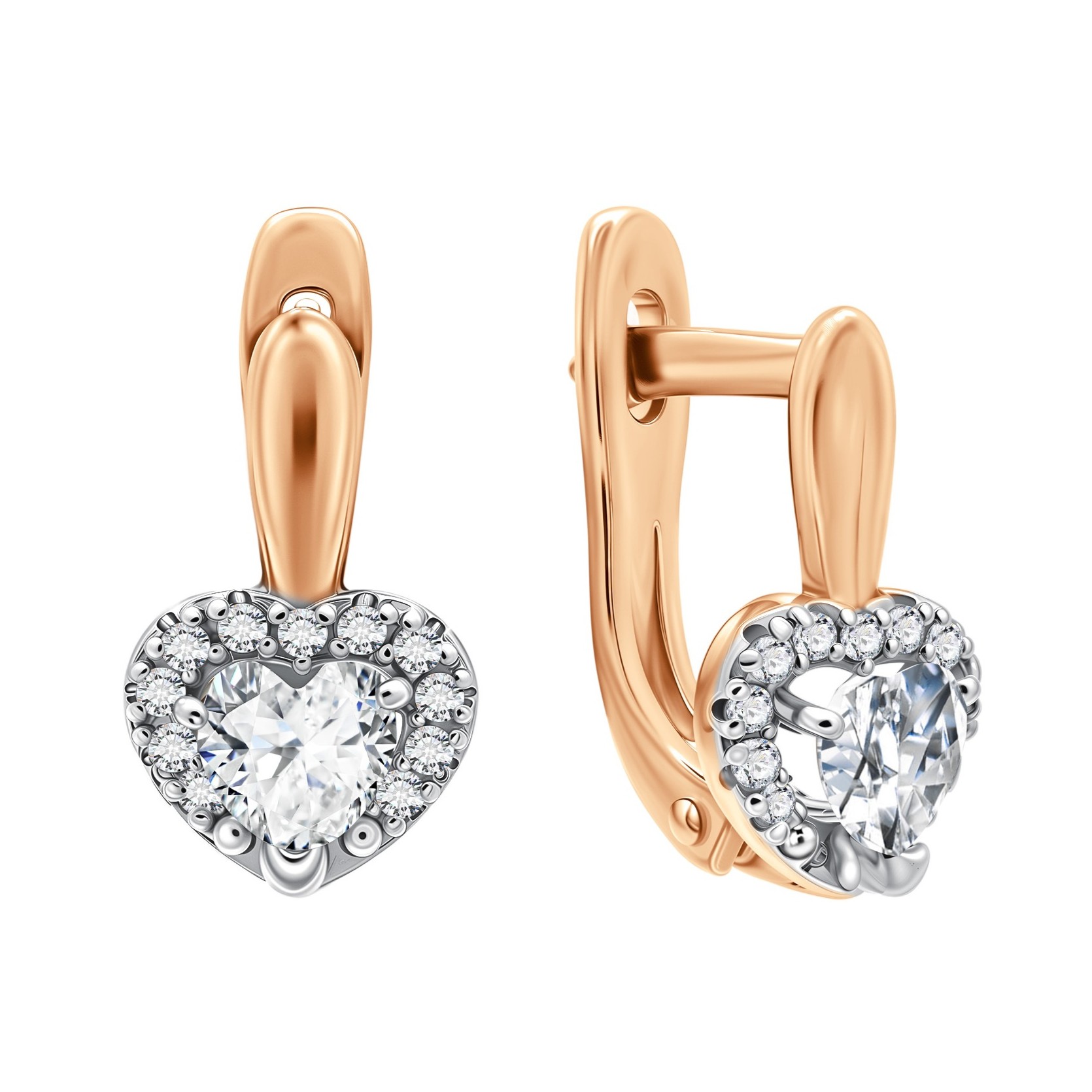 Серьги из серебра с позолотой и фианитами