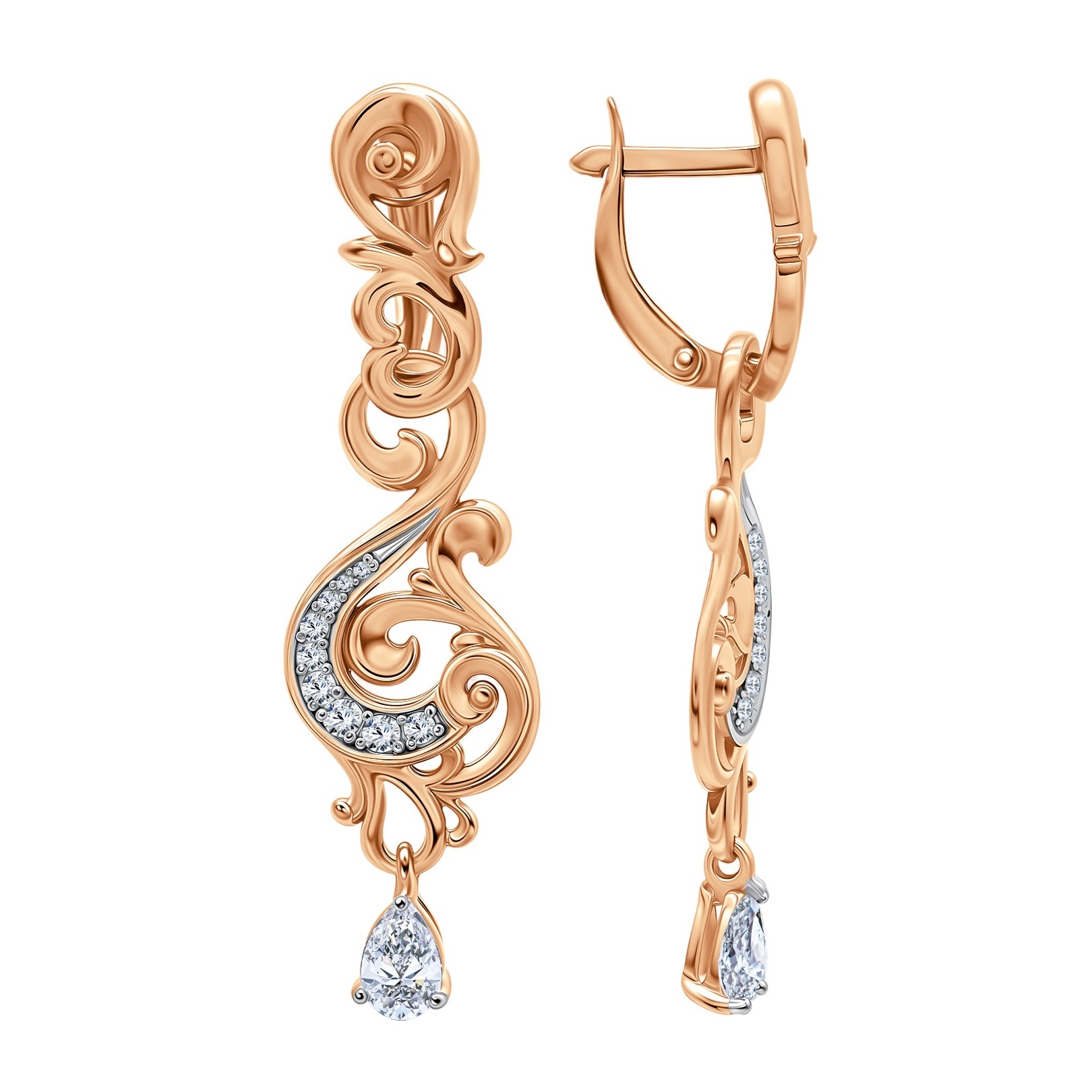 Серьги из серебра с позолотой и фианитами