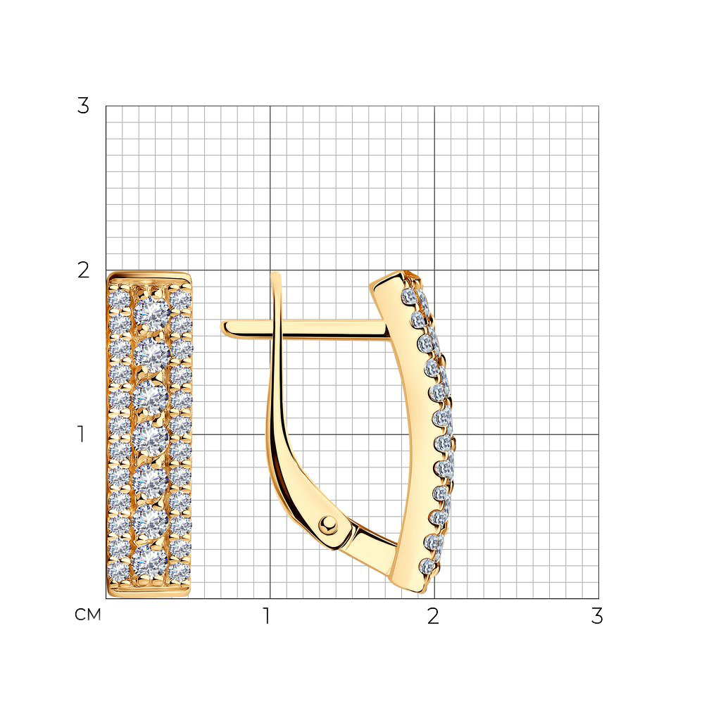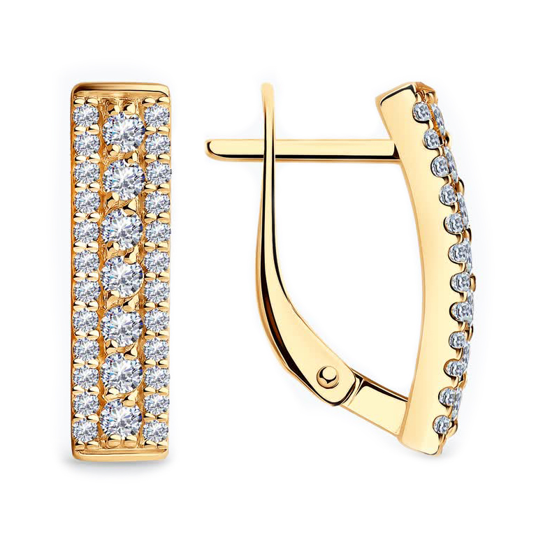 Серьги из серебра с позолотой и фианитами