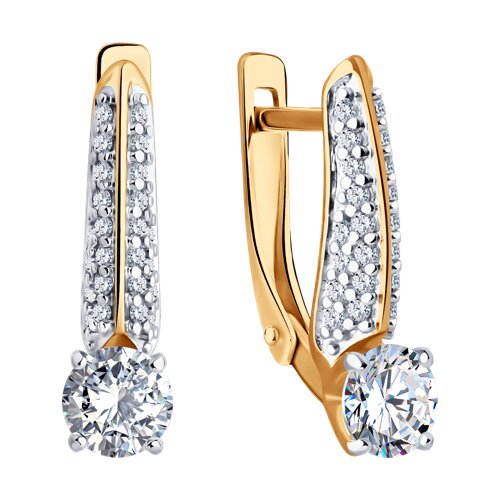 Серьги из серебра с позолотой и фианитами