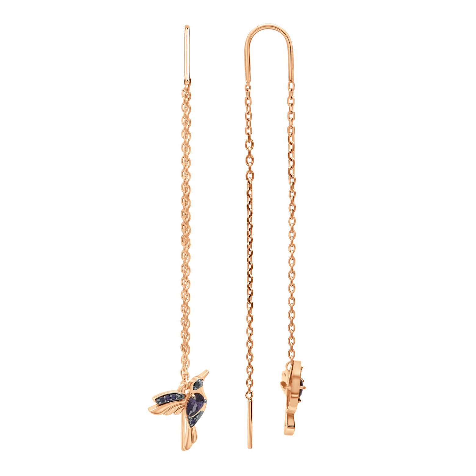 Серьги из серебра с позолотой и фианитами "Колибри"