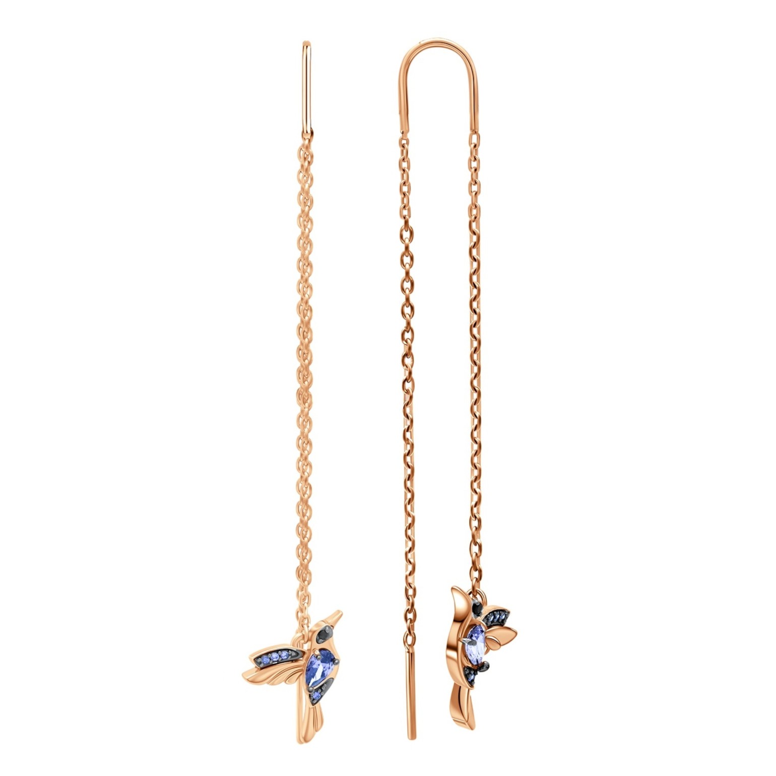 Серьги из серебра с позолотой и фианитами "Колибри"