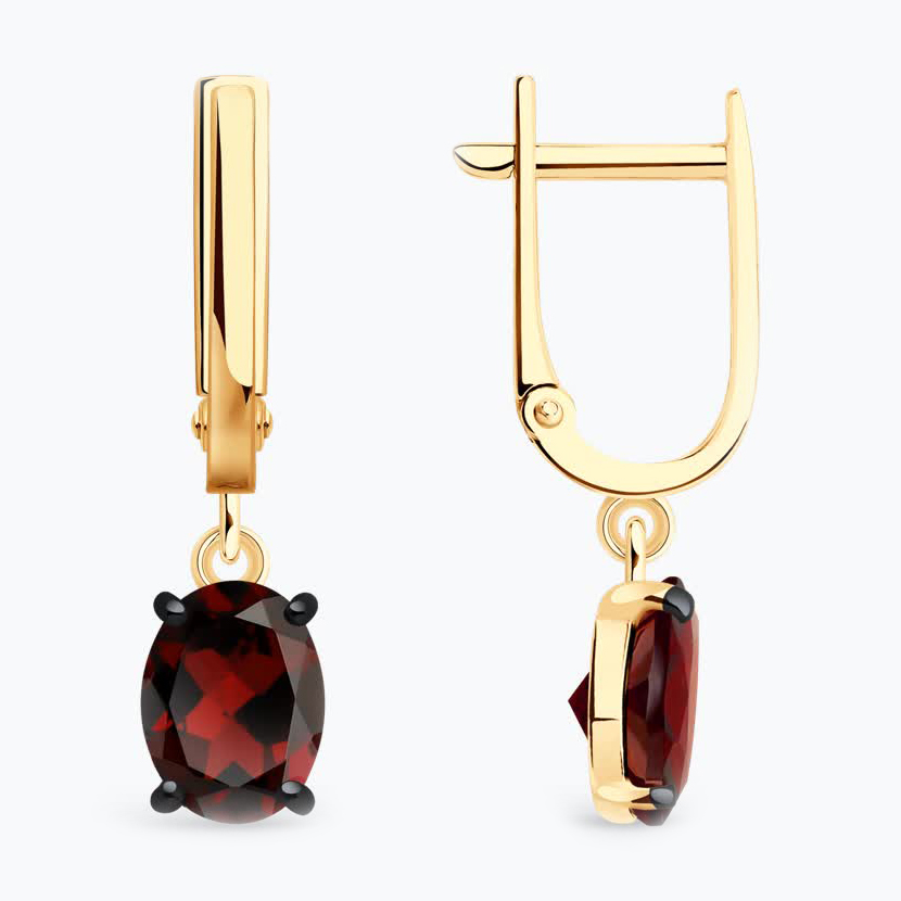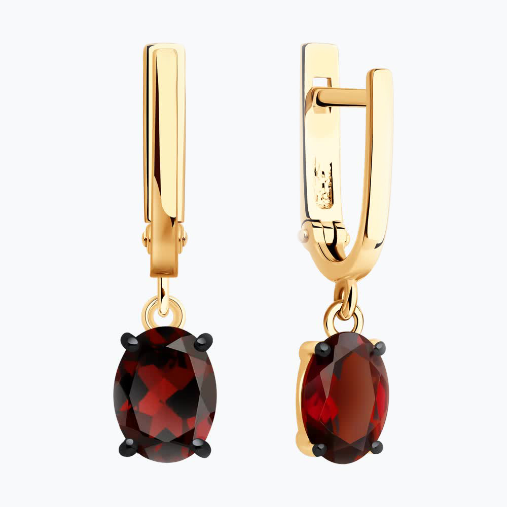 Серьги из серебра с позолотой и гранатами