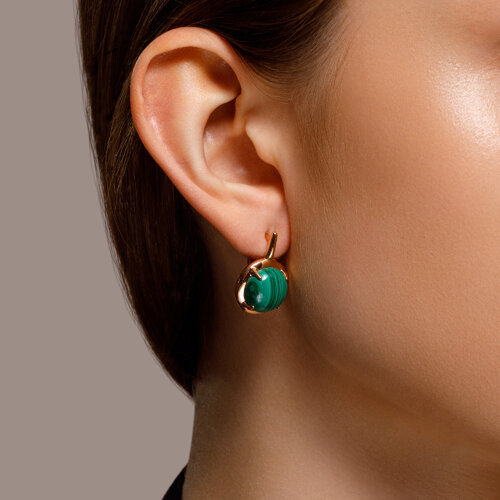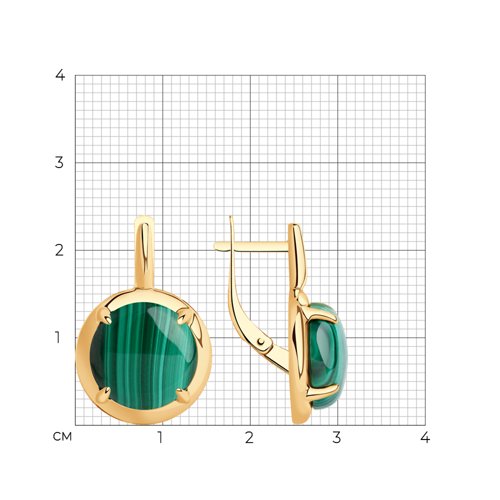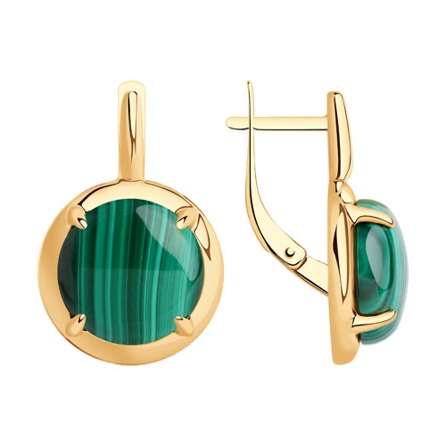 Серьги из серебра с позолотой и малахитом