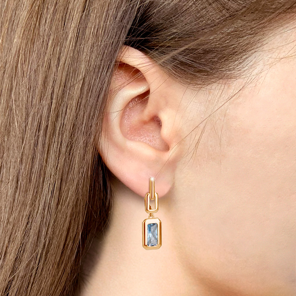 Серьги из серебра с позолотой и нанотопазом Swiss
