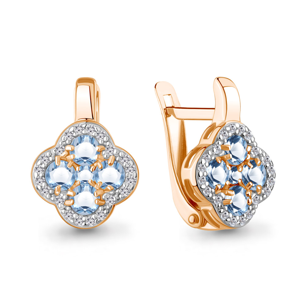 Серьги из серебра с позолотой, топазами Swiss и фианитами