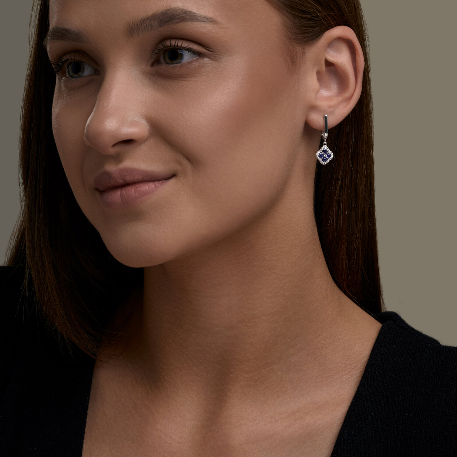 Серьги из серебра с сапфирами и фианитами