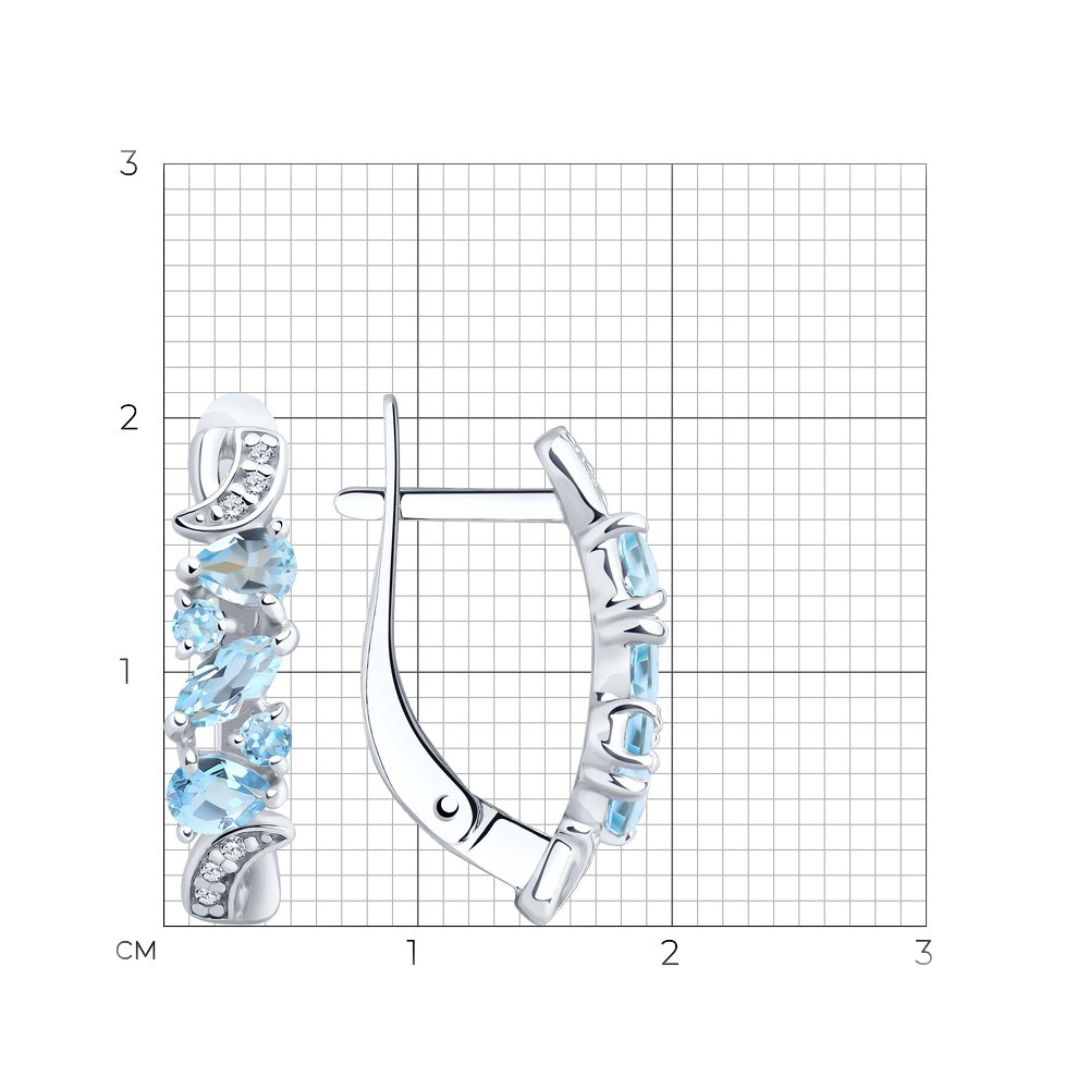 Серьги из серебра с топазами и фианитами