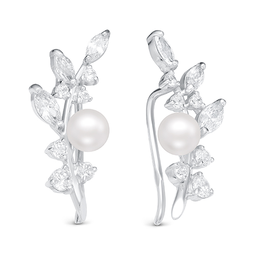 Серьги из серебра с жемчугом и фианитами
