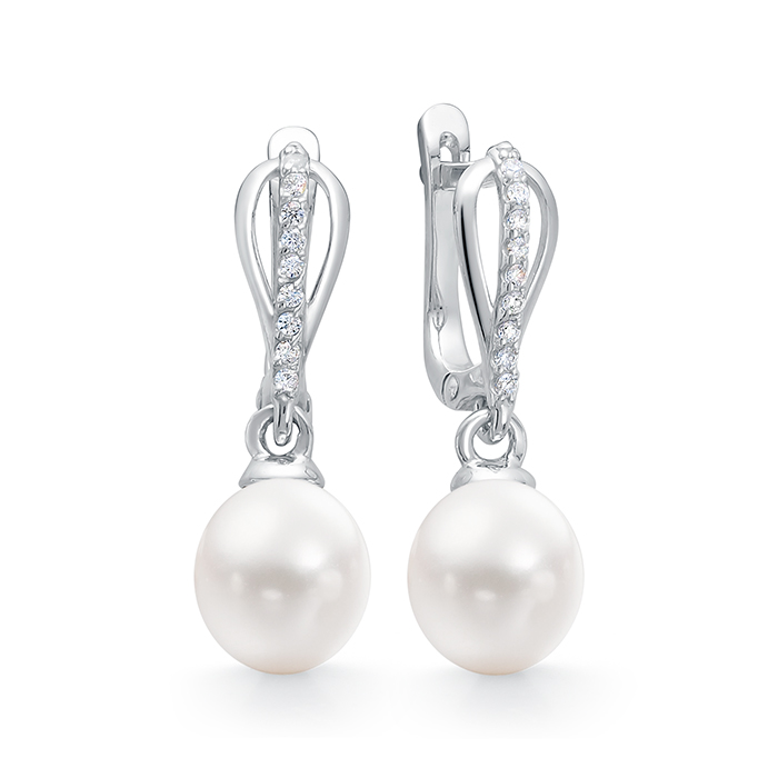 Серьги из серебра с жемчугом и фианитами