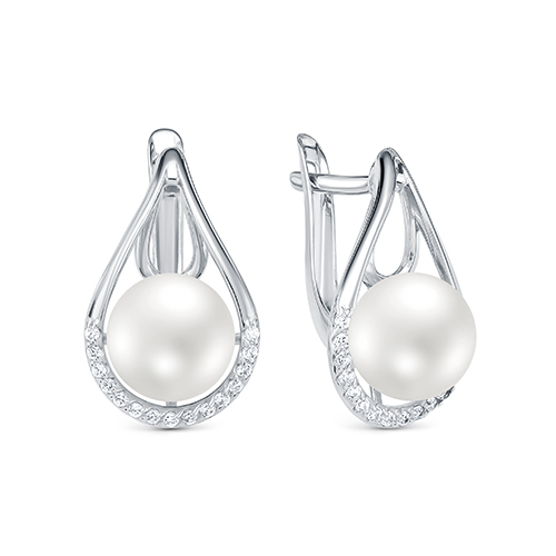 Серьги из серебра с жемчугом и фианитами