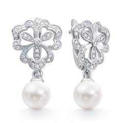 Серьги из серебра с жемчугом и фианитами