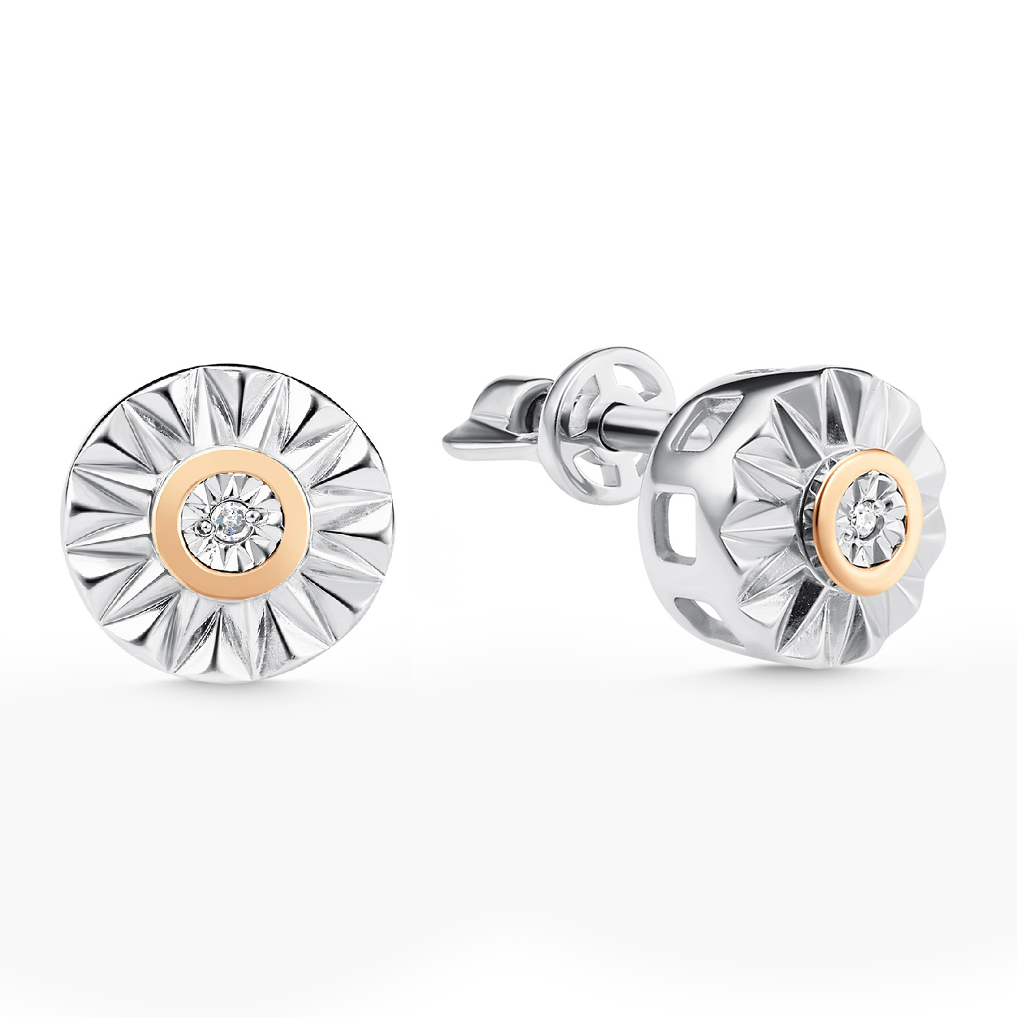 Серьги из серебра с золотыми вставками и бриллиантами