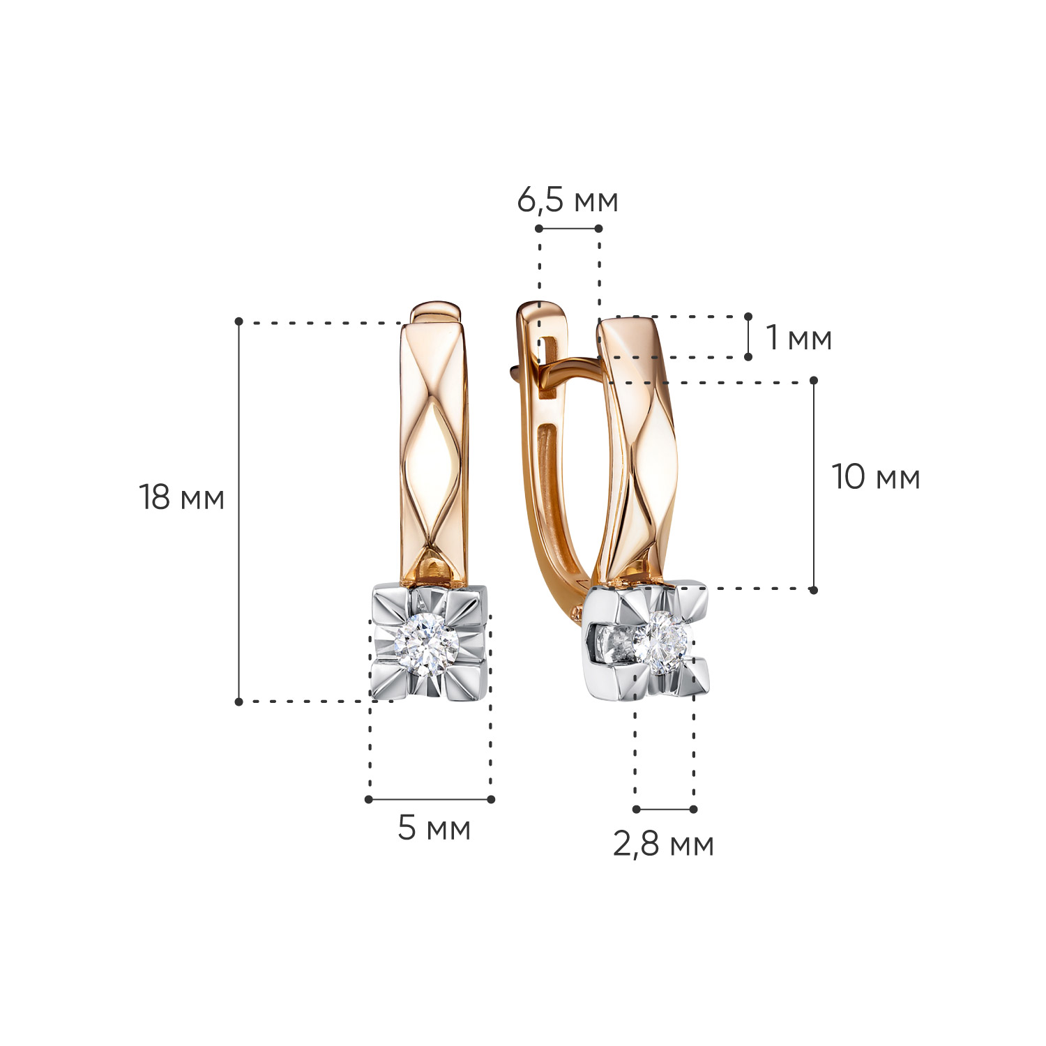 Внутренняя высота серьги - 1,0 см