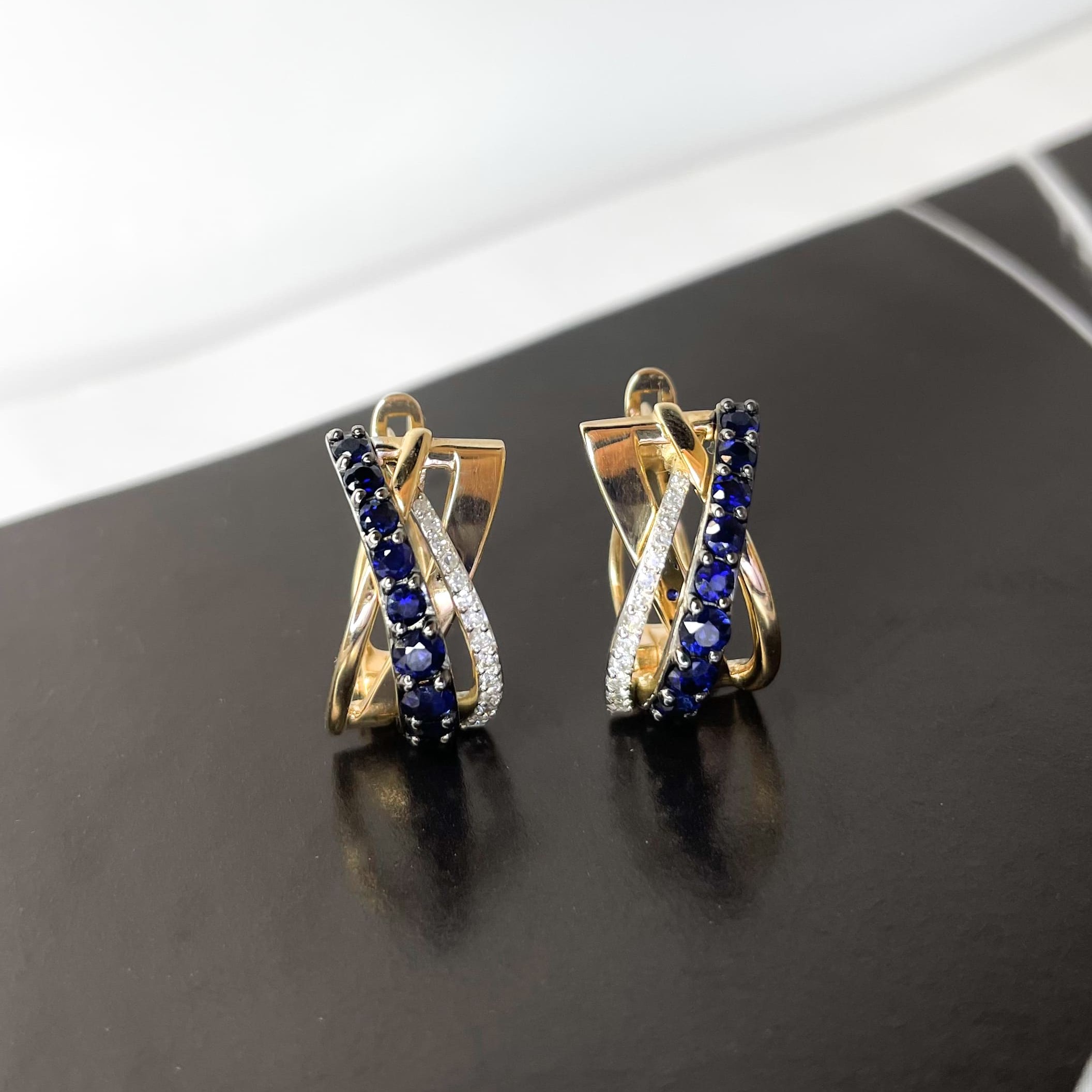 Серьги из золота с бриллиантами и сапфирами