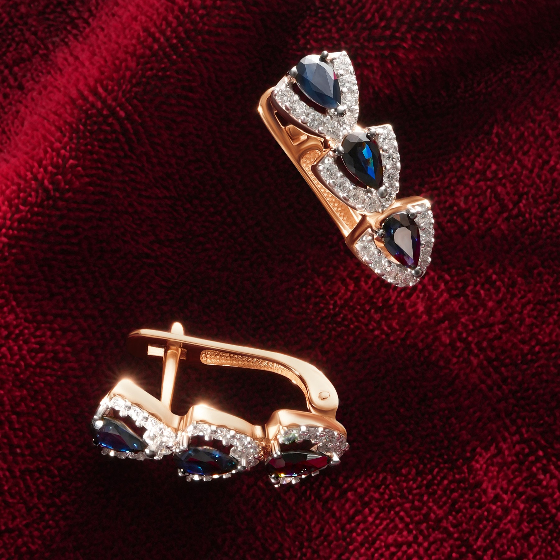 Серьги из золота с бриллиантами и сапфирами