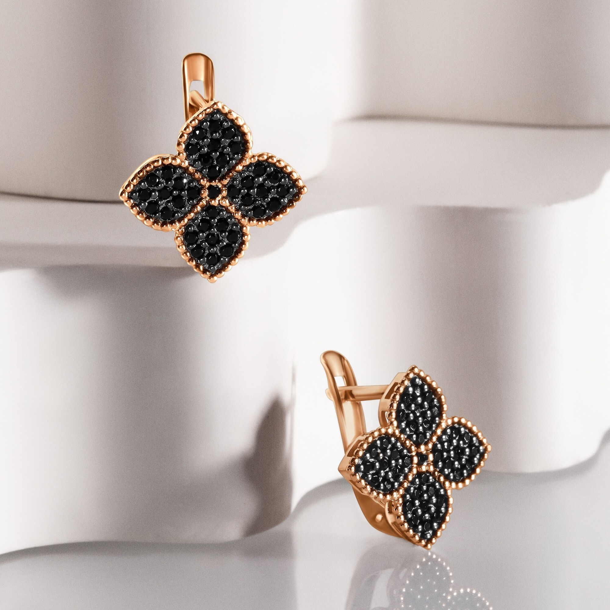 Серьги из золота с черными фианитами