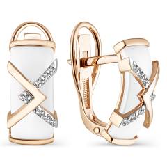 Серьги из золота с керамической вставкой и фианитами