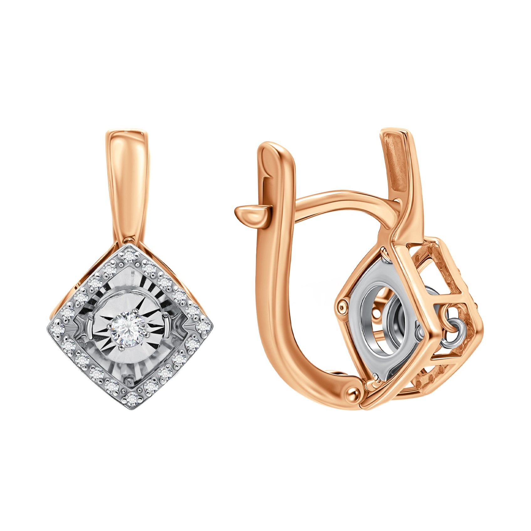 Серьги из золота с "танцующими" бриллиантами и бриллиантами