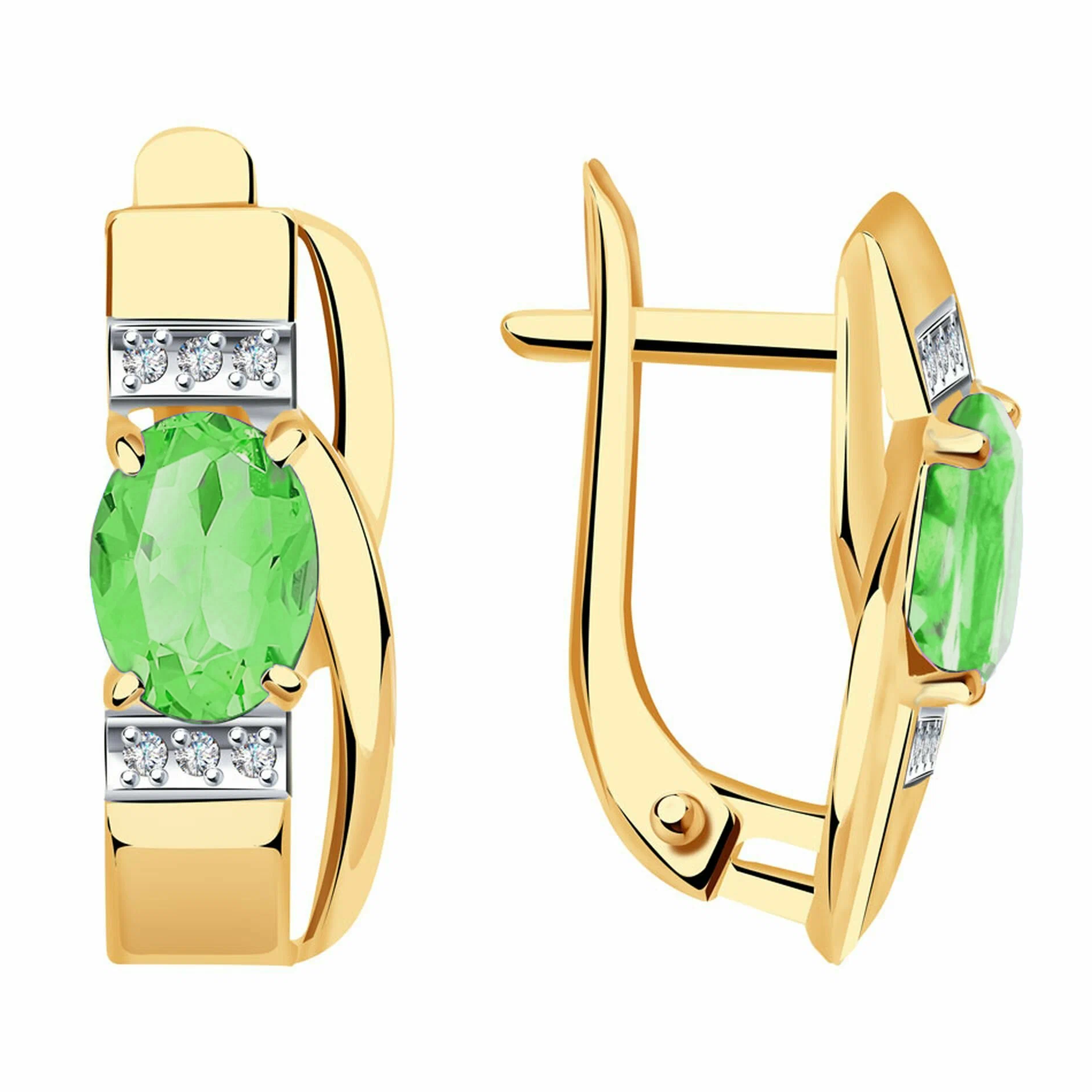 Серьги из золота с хризолитами и фианитами