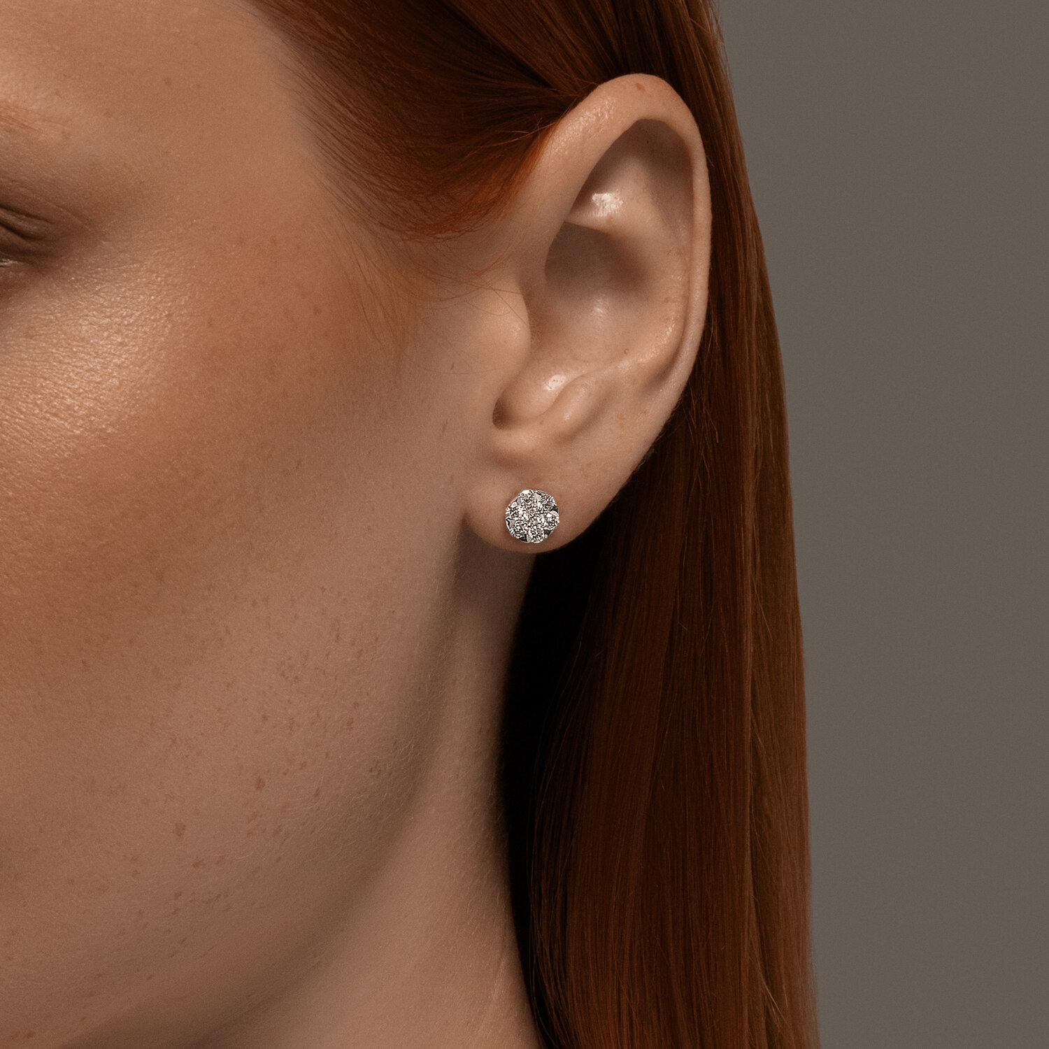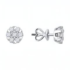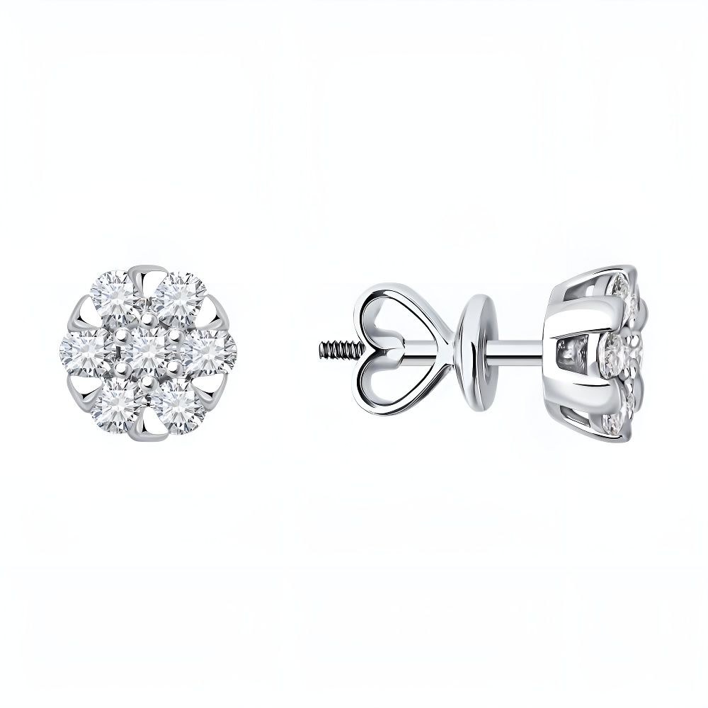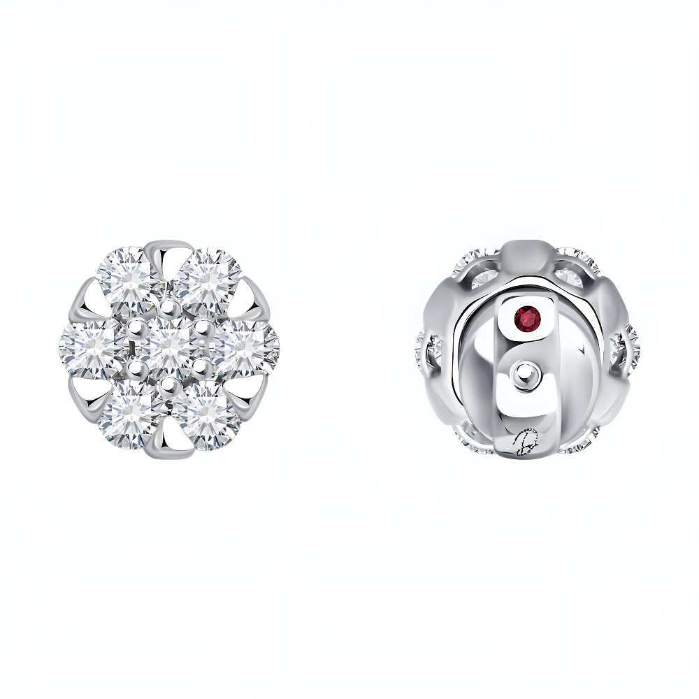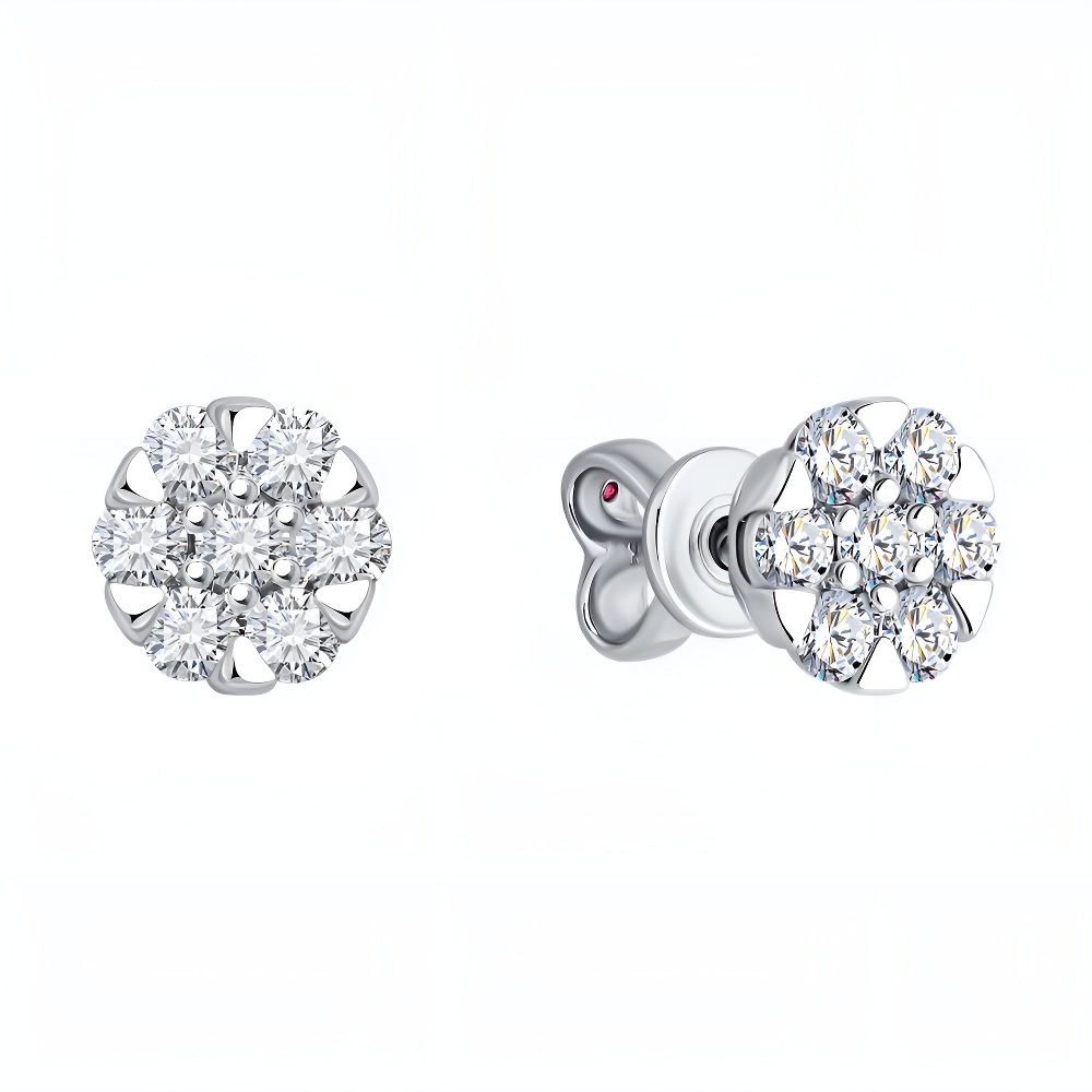 Серьги из белого золота с выращенными бриллиантами и рубинами