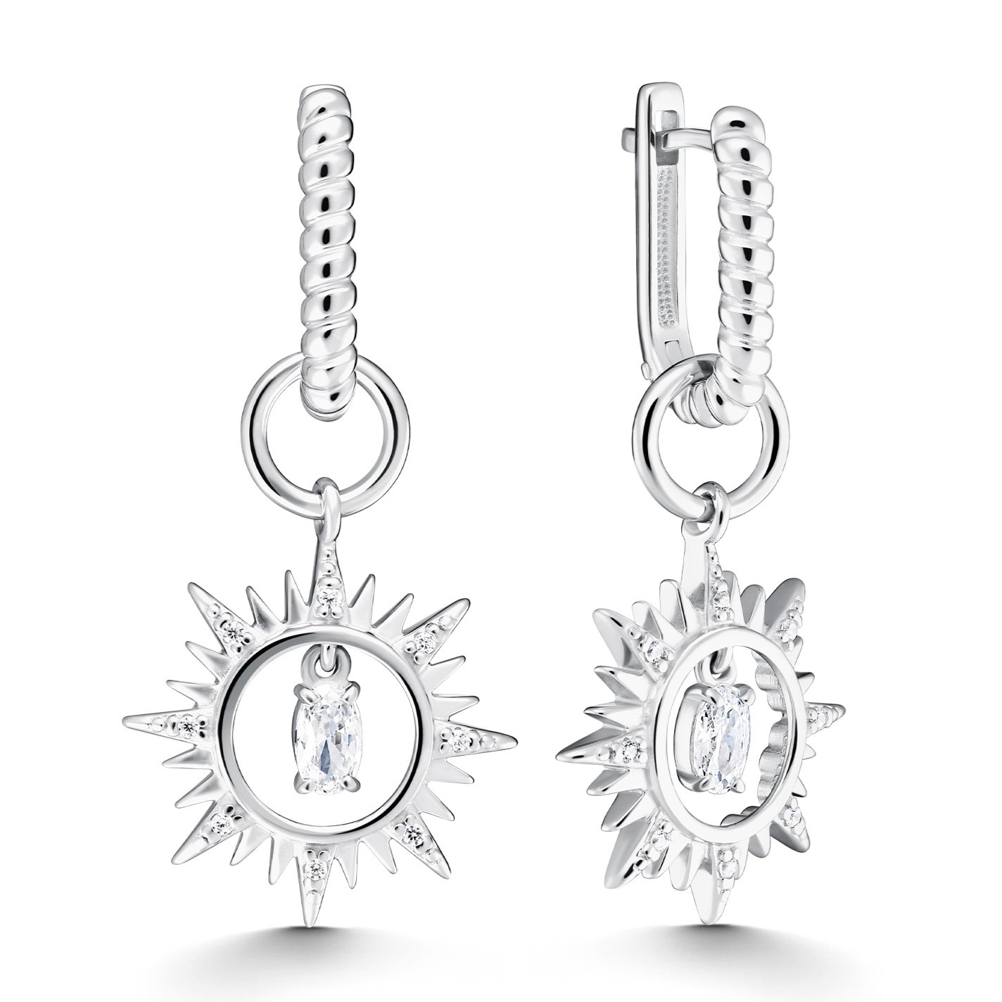 Серьги-трансформеры из серебра с фианитами