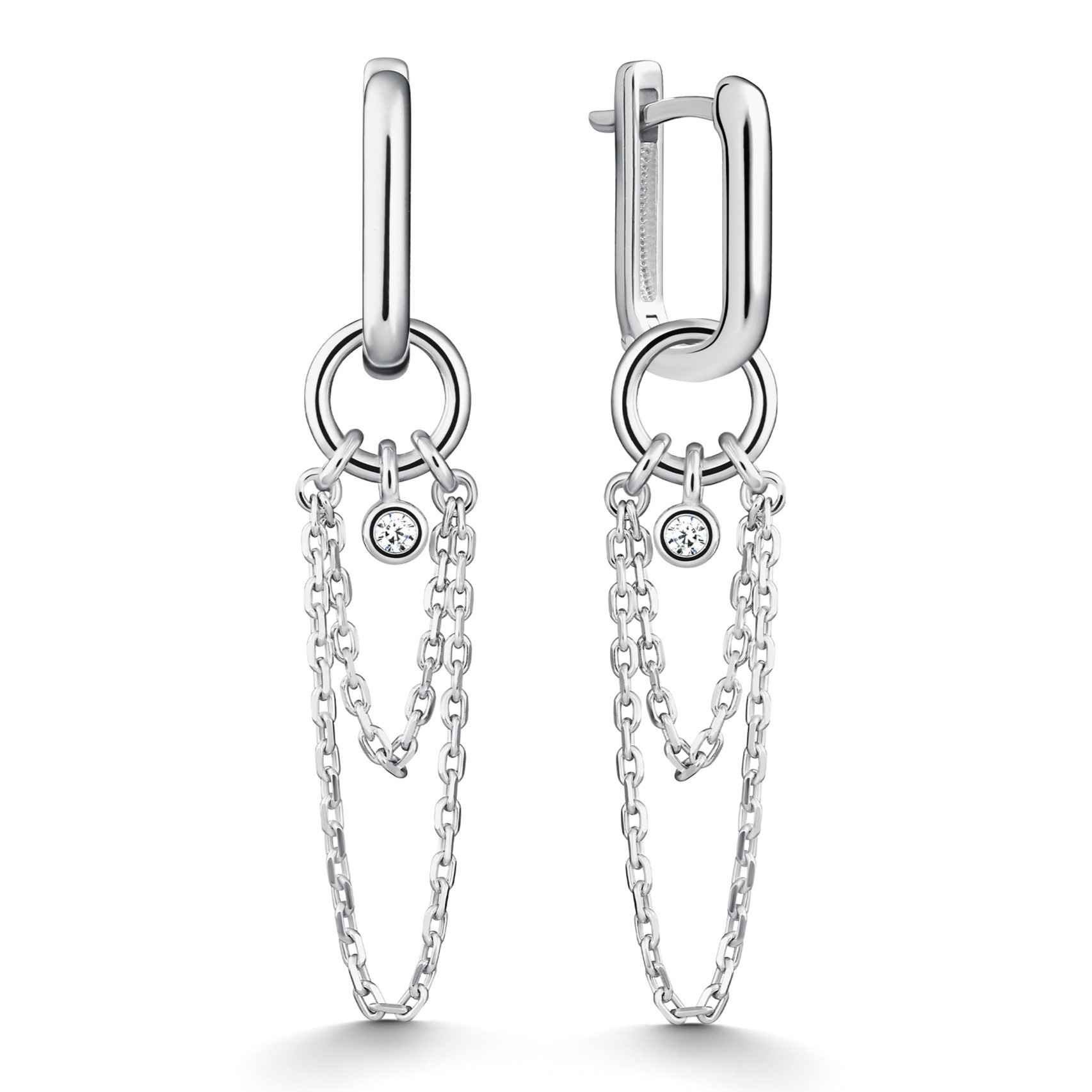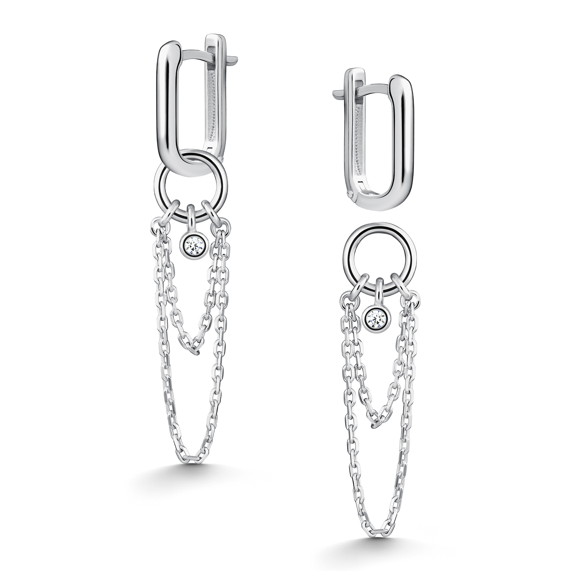 Серьги-трансформеры из серебра с фианитами
