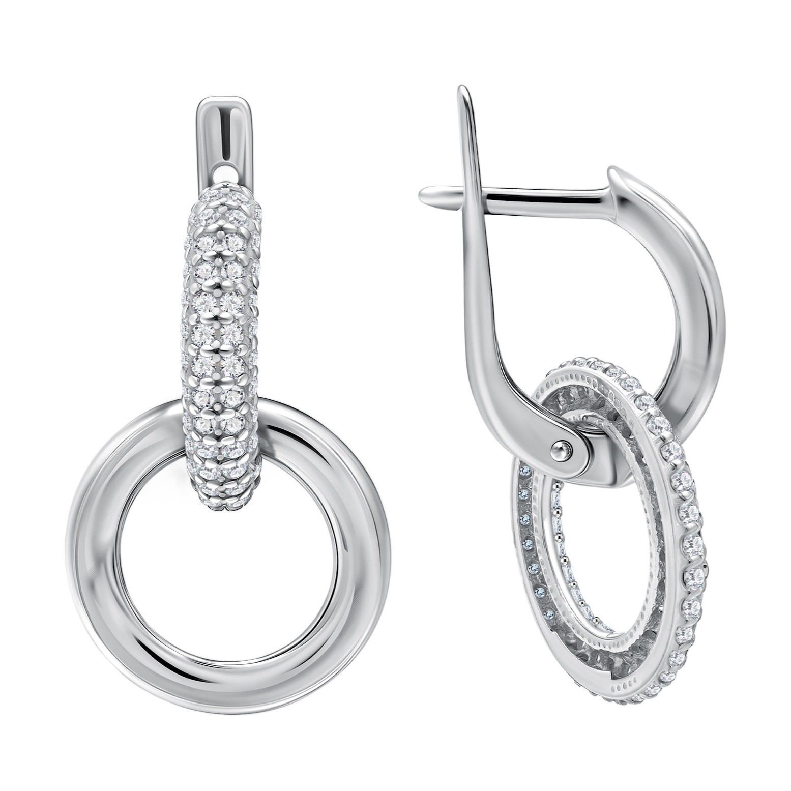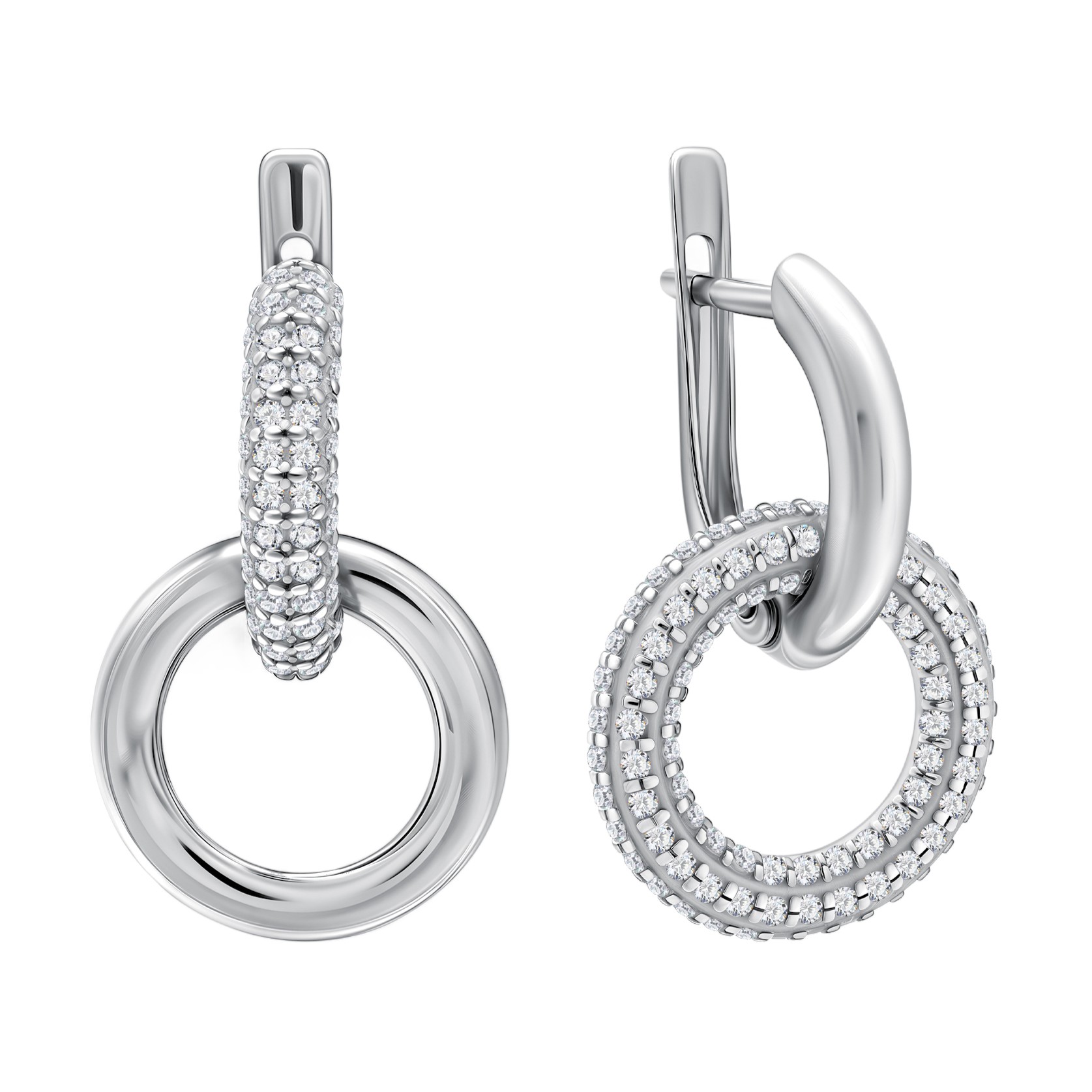 Серьги-трансформеры из серебра с фианитами