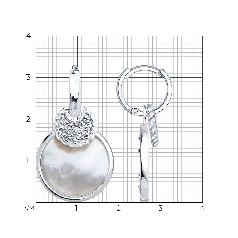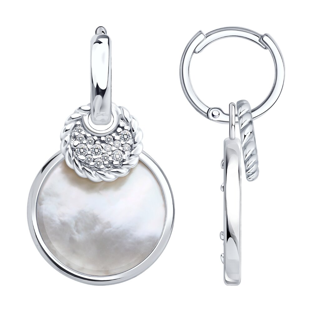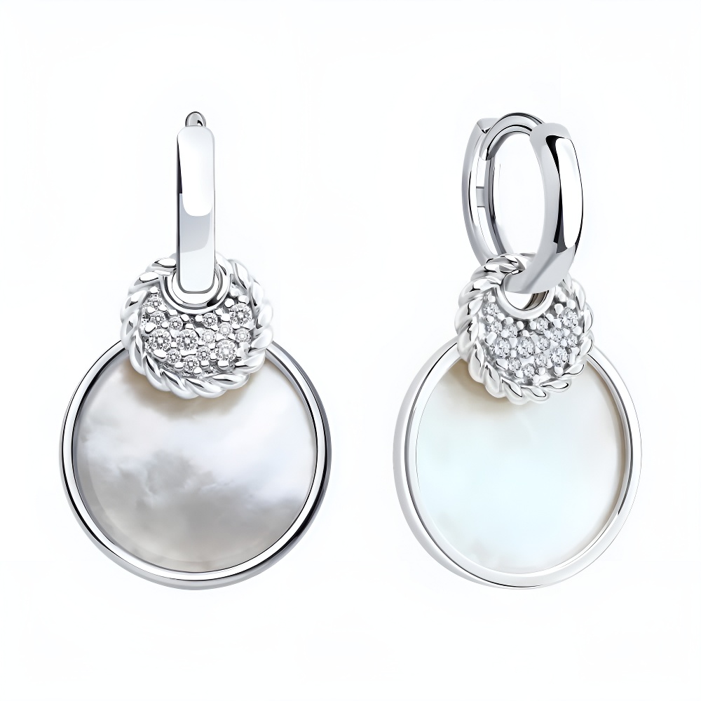 Серьги-трансформеры из серебра с перламутром и фианитами