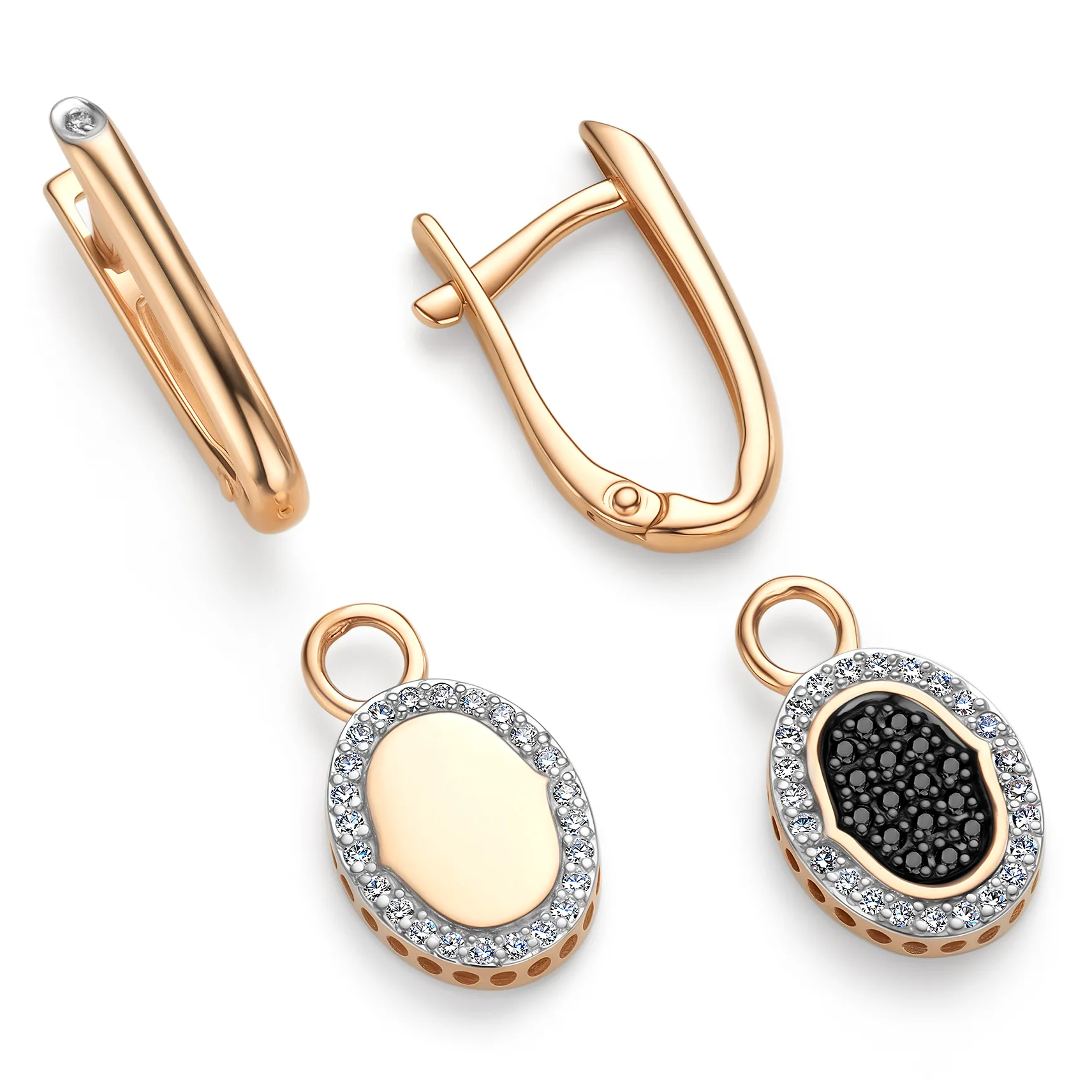 Серьги-трансформеры из золота с бриллиантами и черными бриллиантами