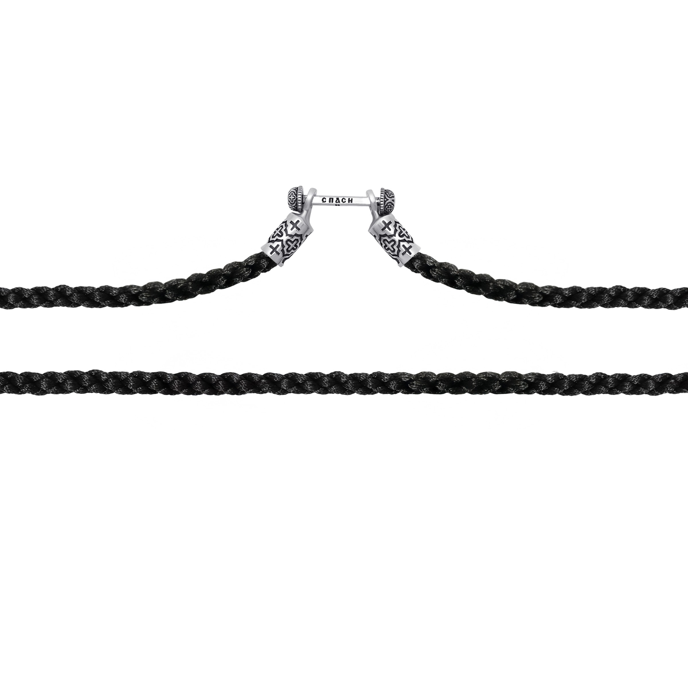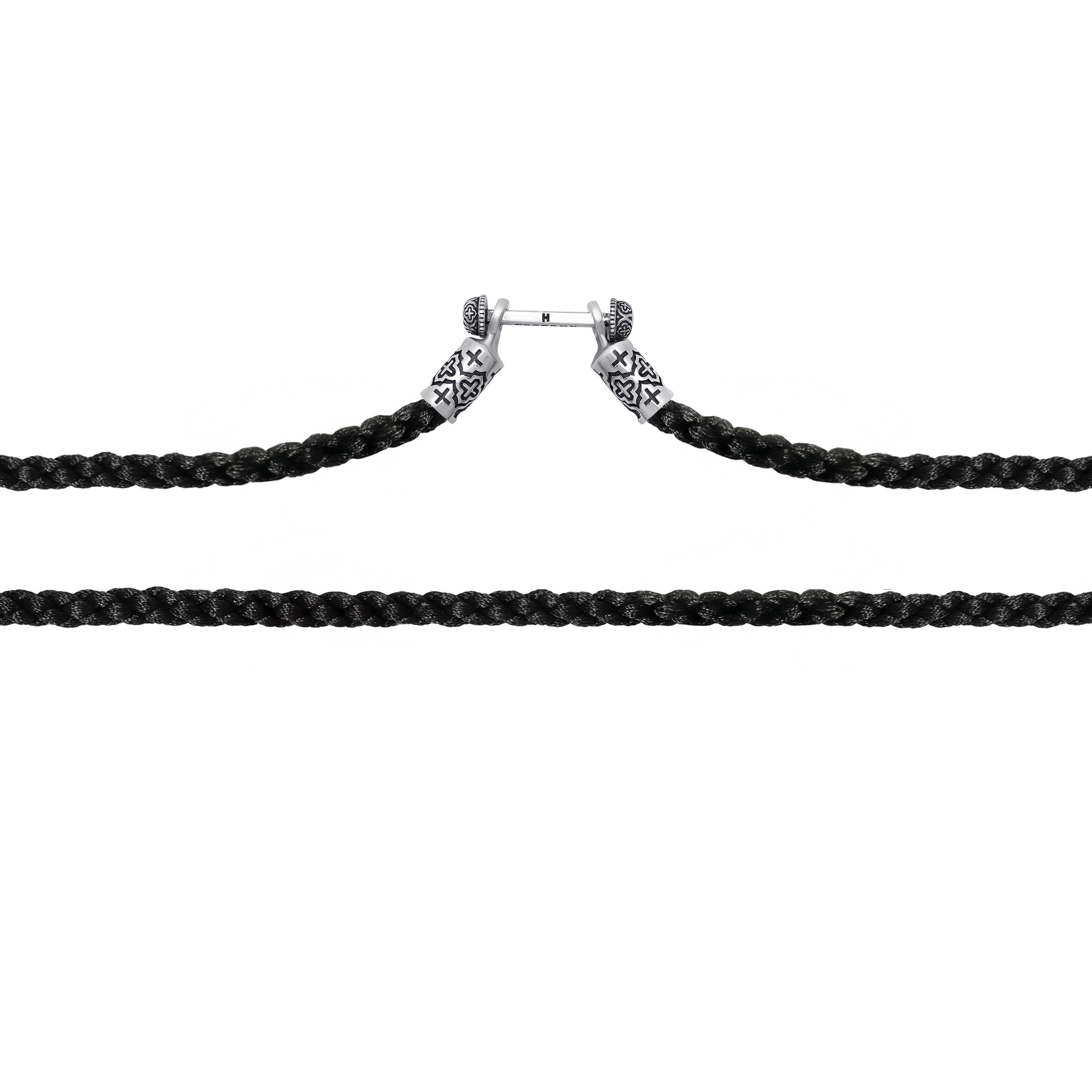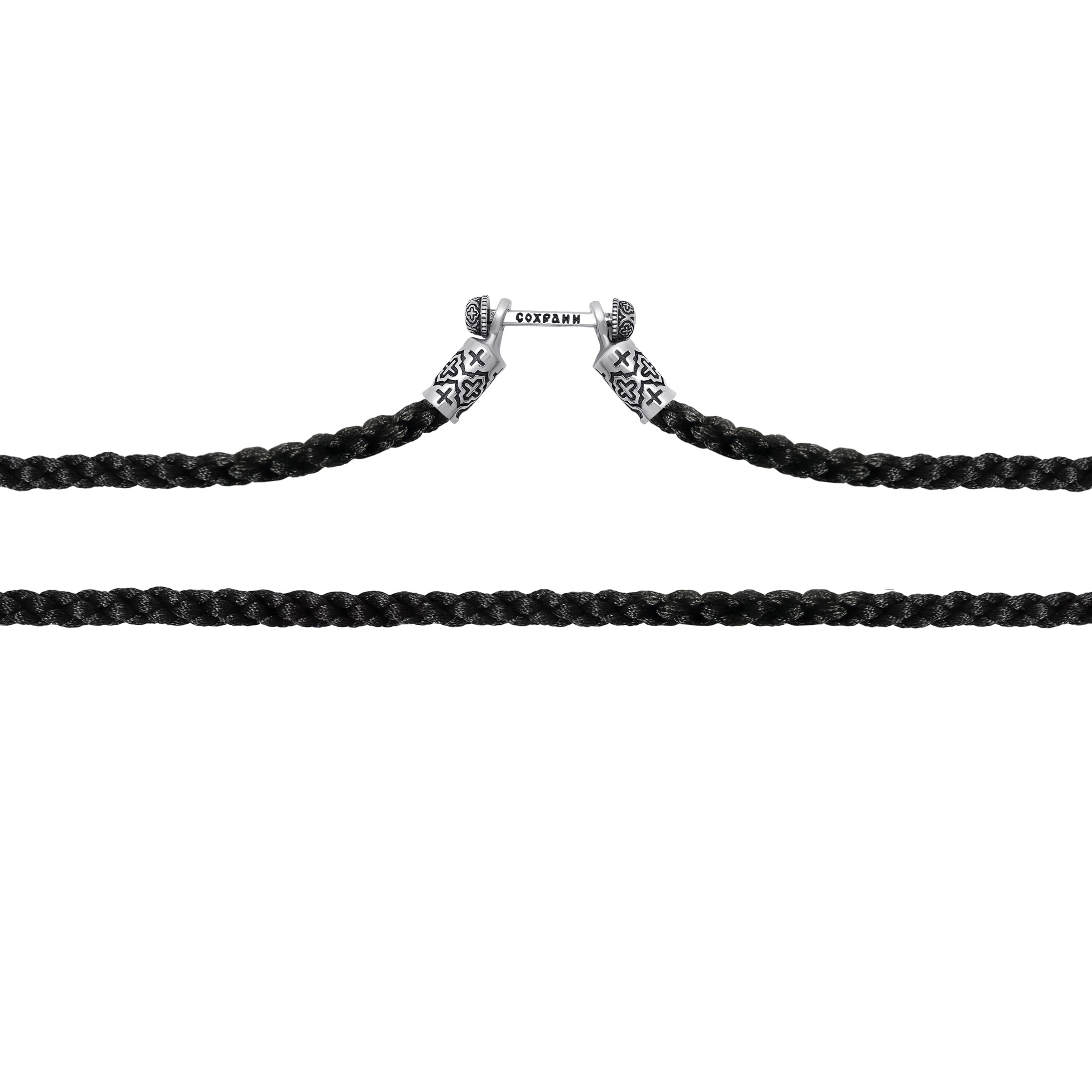 Текстильный шнурок с замком из серебра с чернением "Спаси и сохрани"