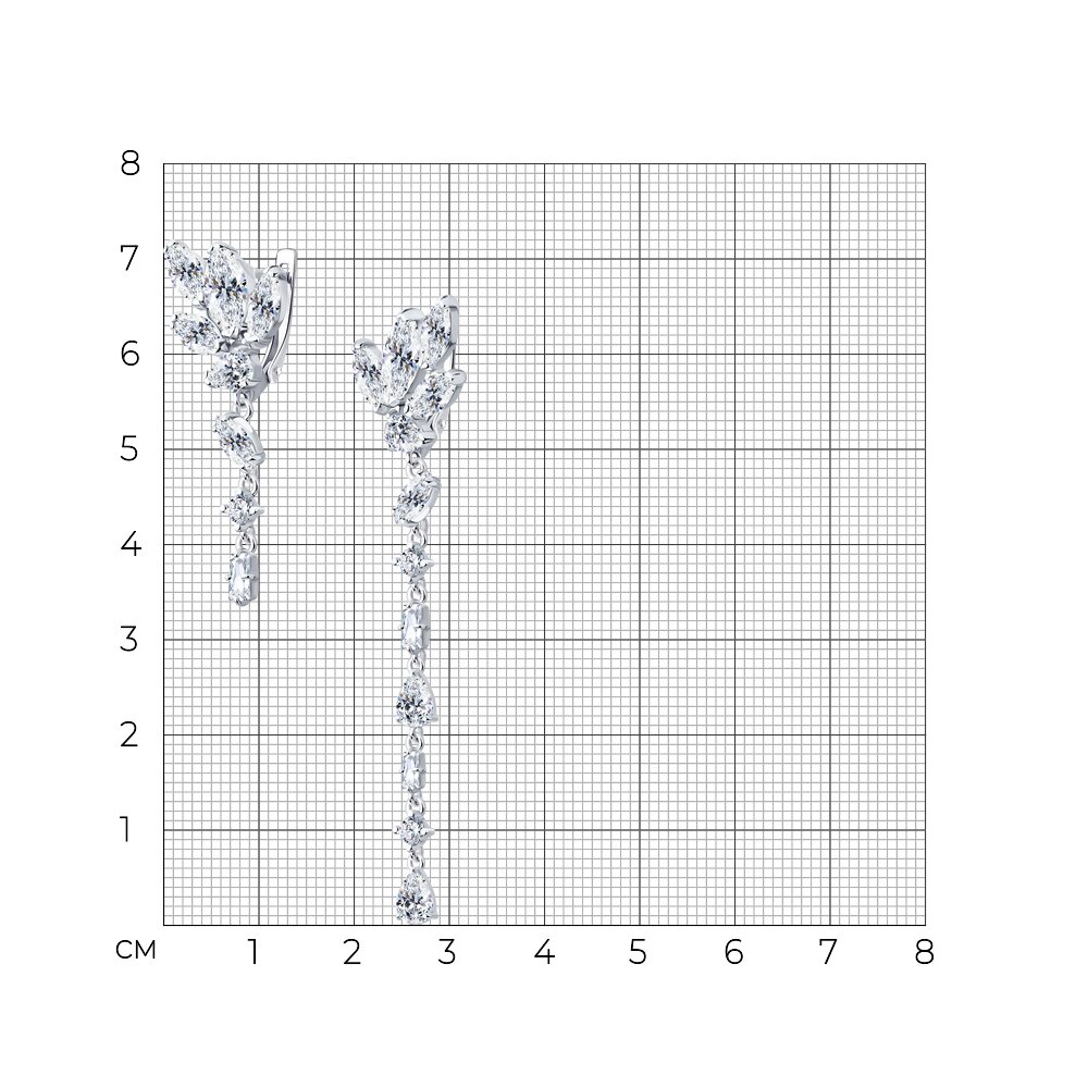 Асимметричные серьги из серебра с фианитами