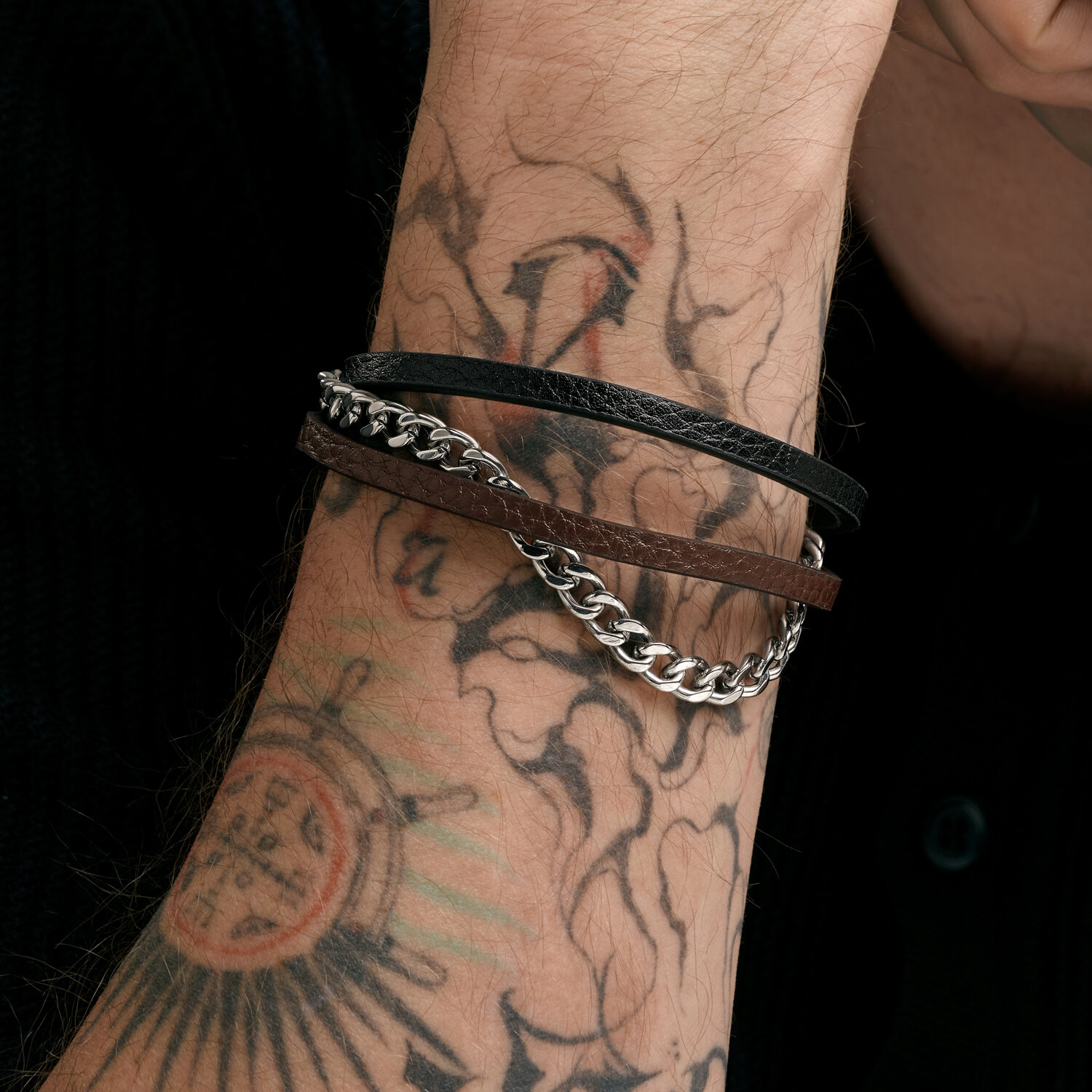 Браслет из кожи со стальными вставками
