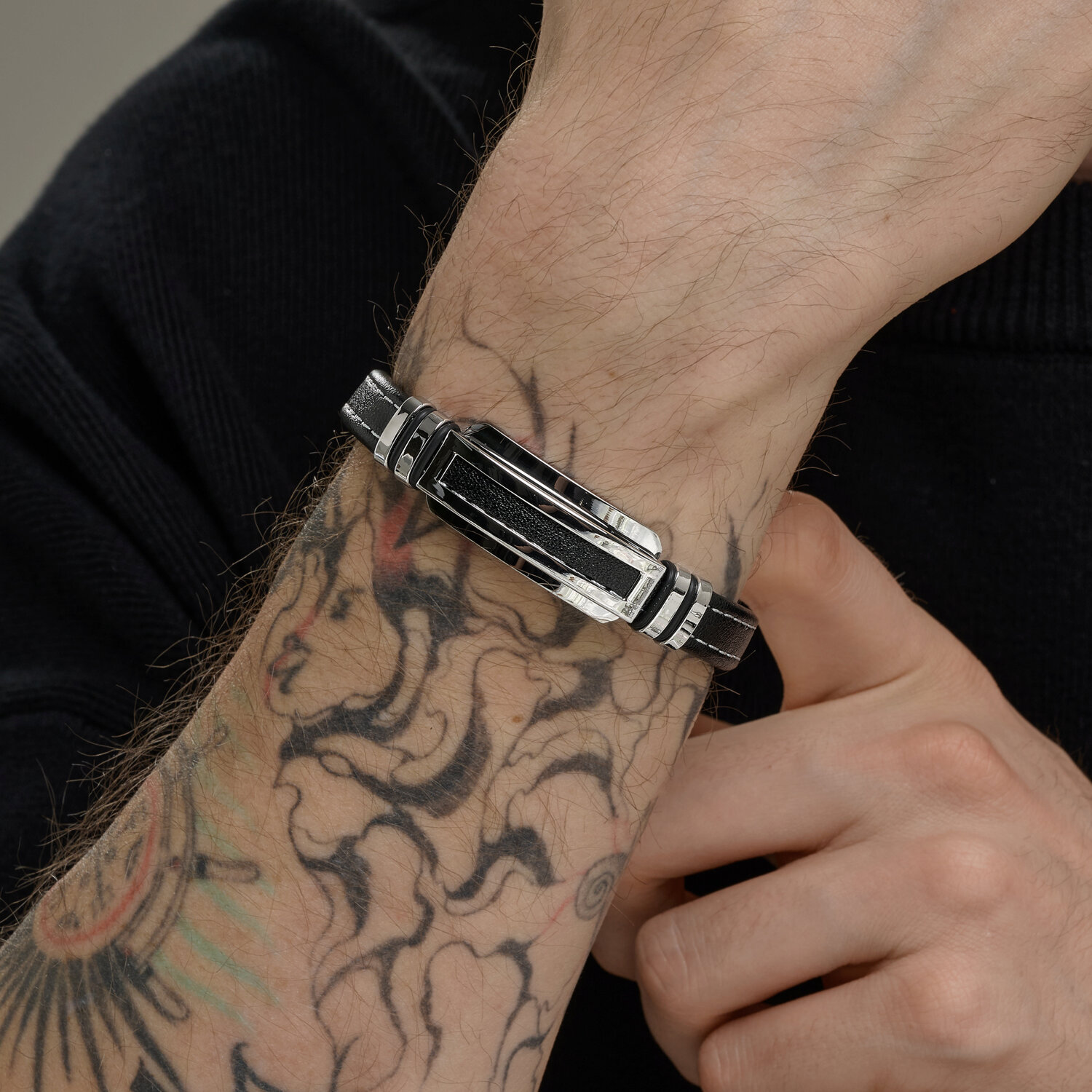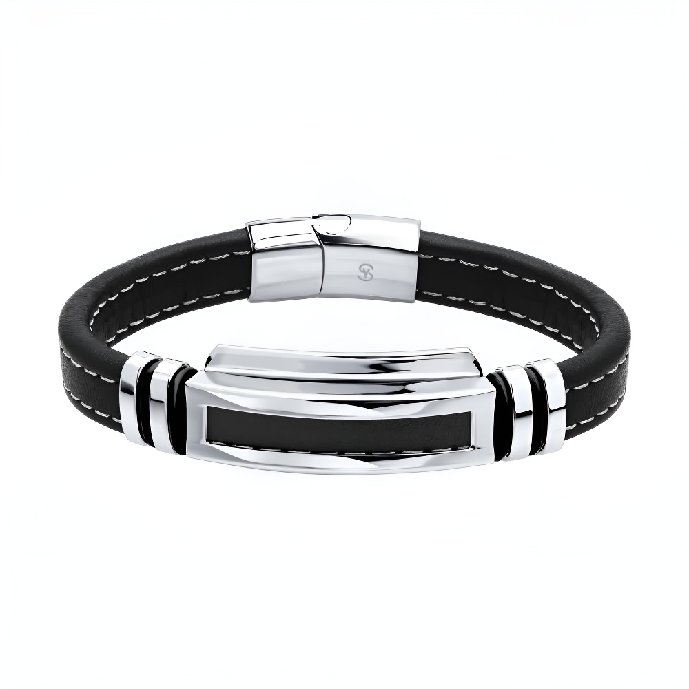 Браслет из кожи со вставками из стали