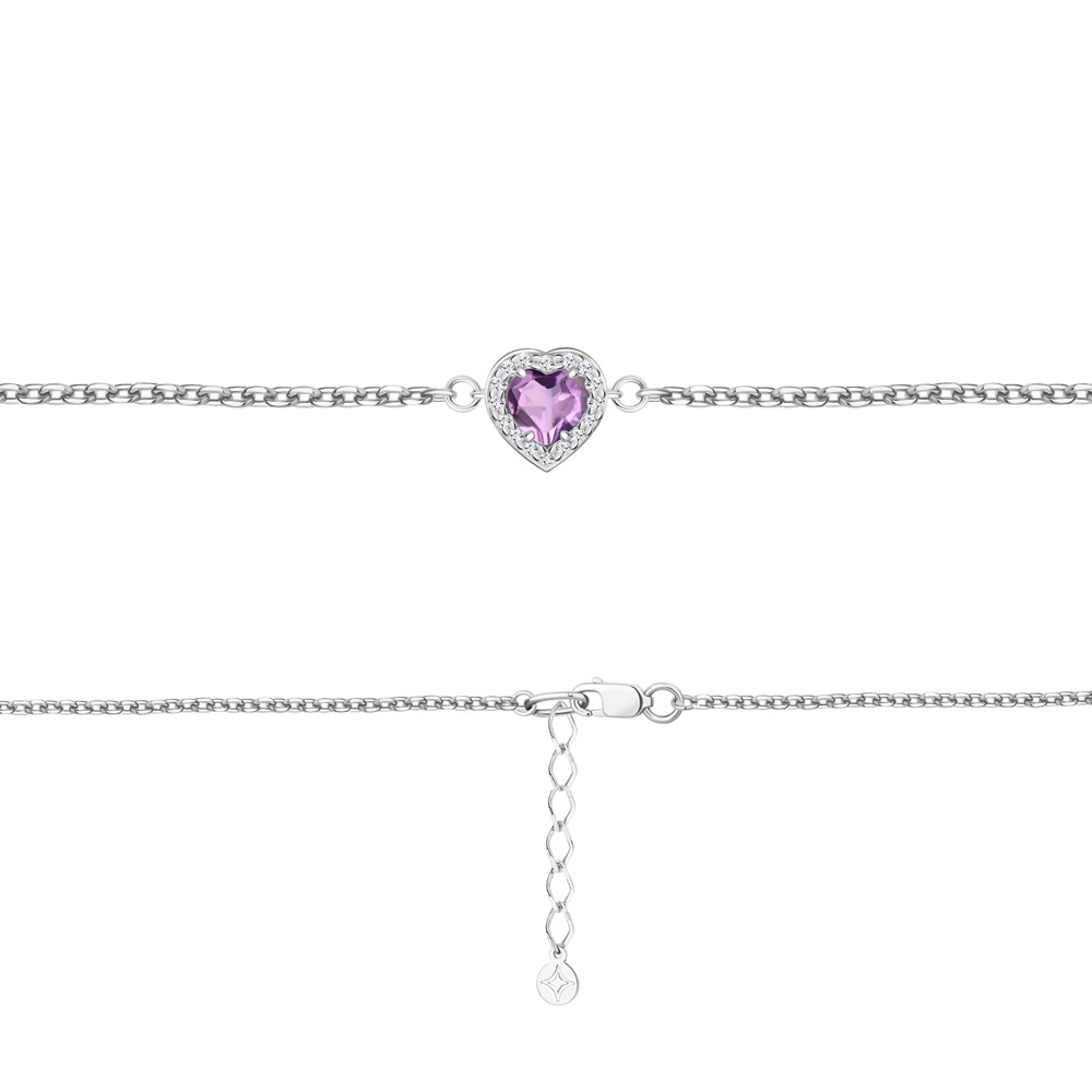 Браслет из серебра с аметистом и фианитами