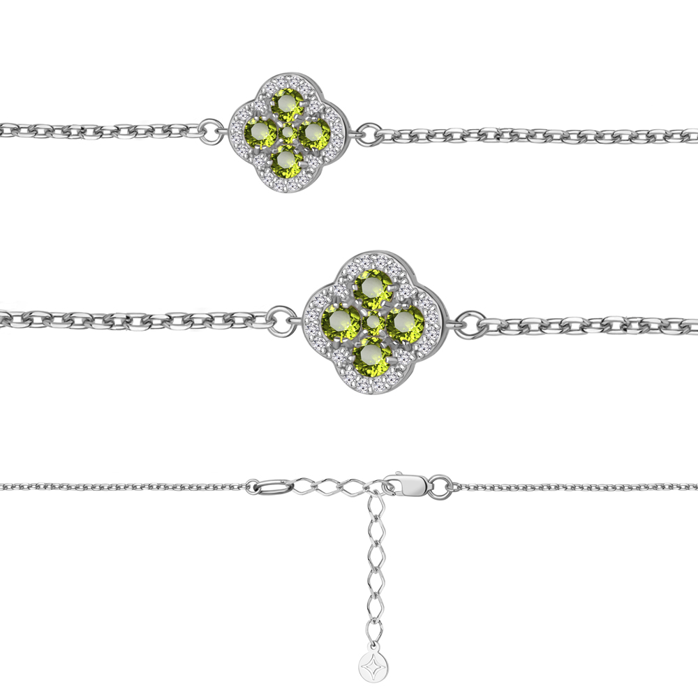 Браслет из серебра с хризолитами и фианитами