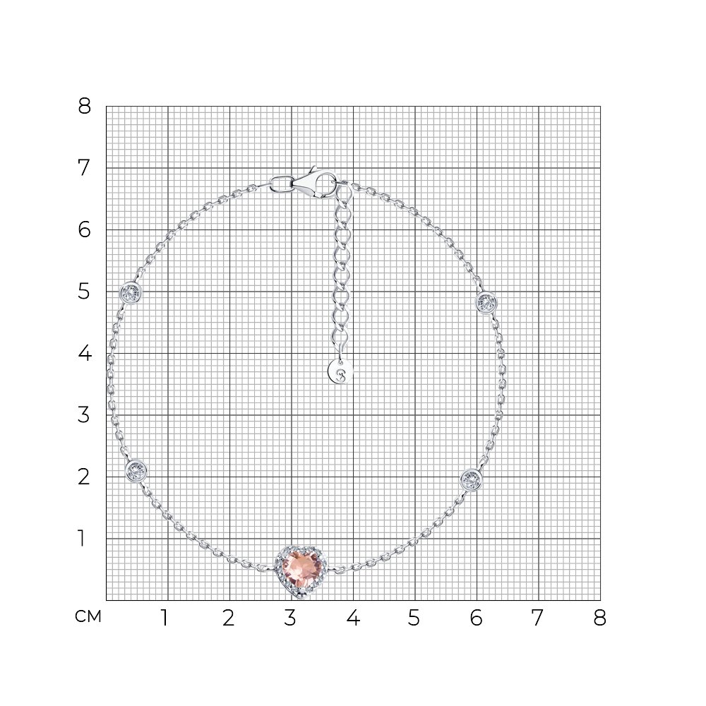 Браслет из серебра с ювелирным кристаллом и фианитами