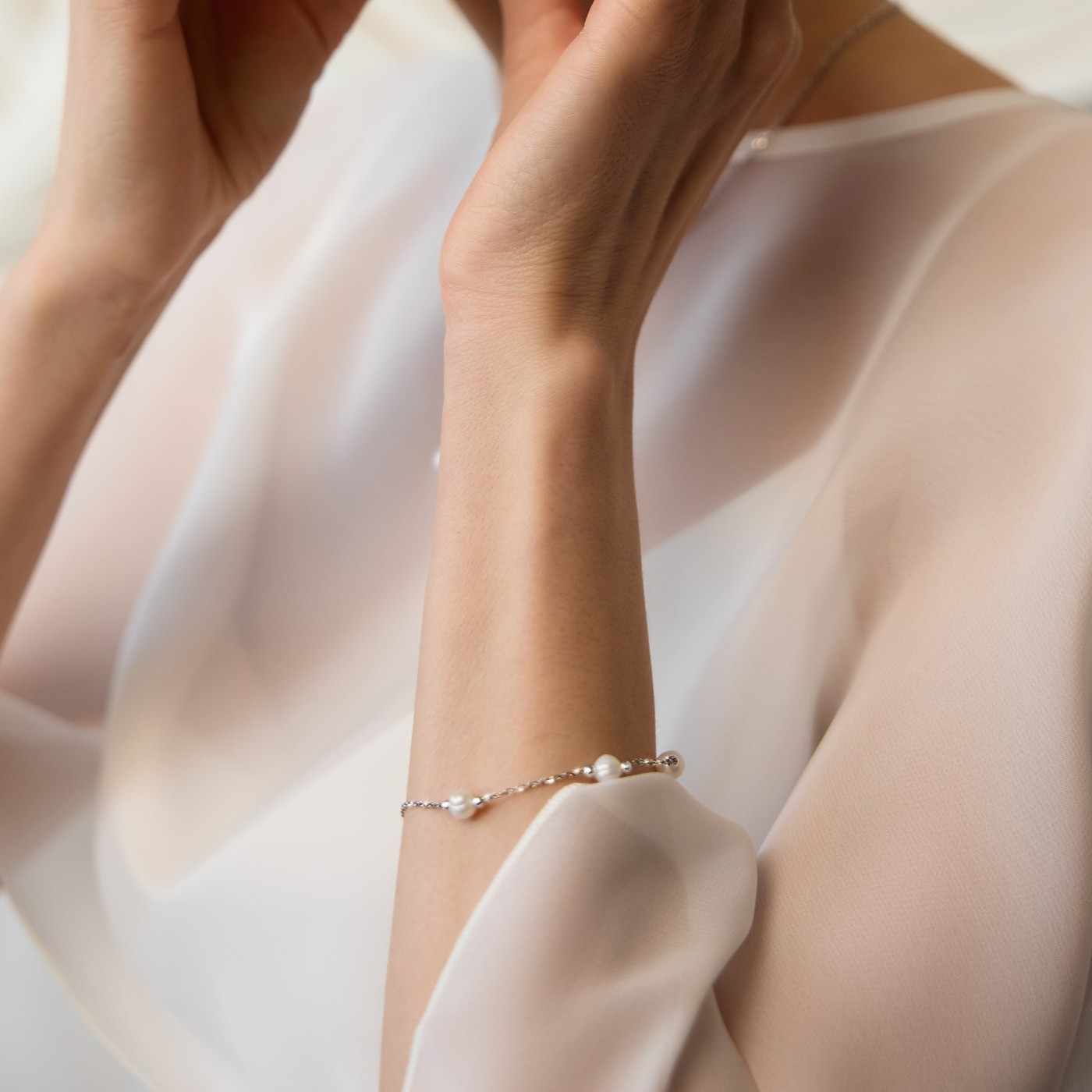 Браслет из серебра с жемчугом и гематитом