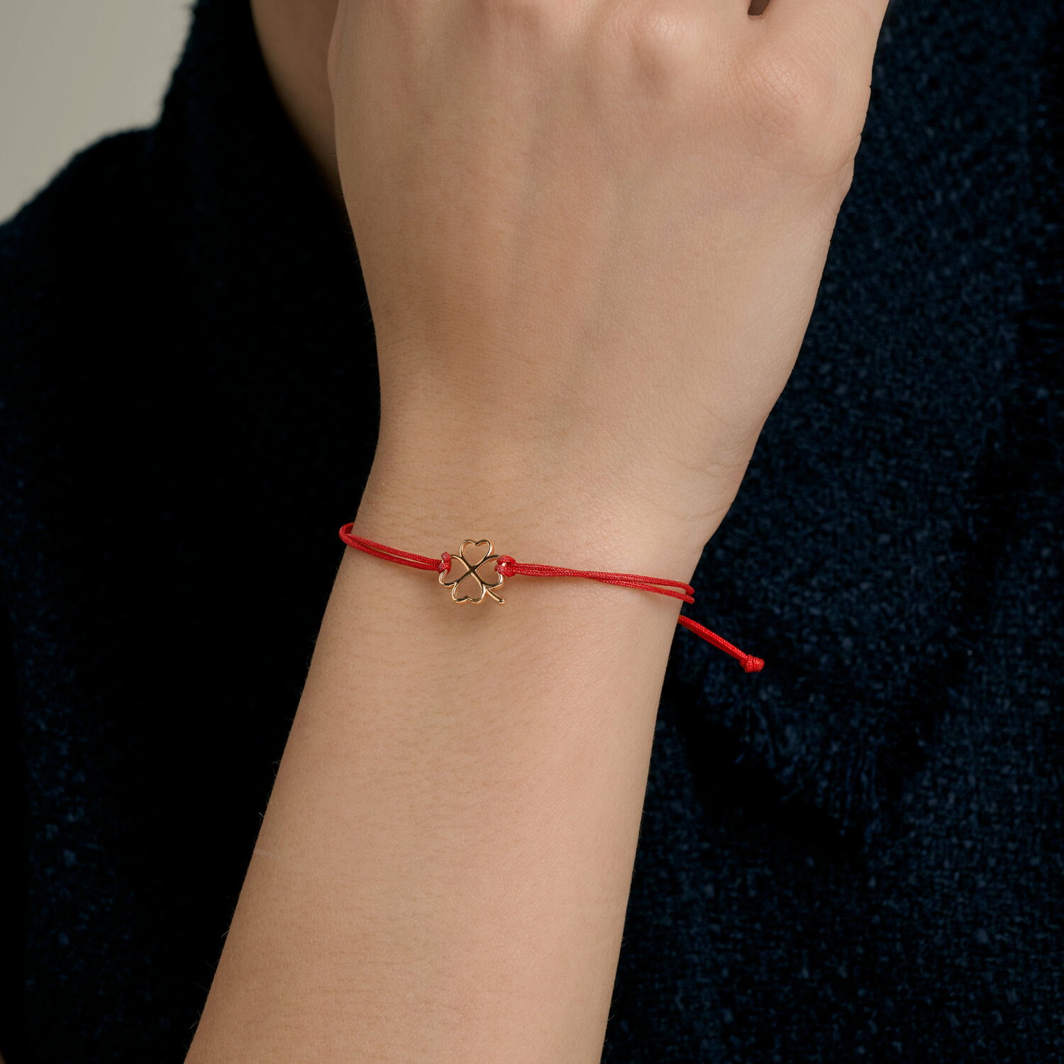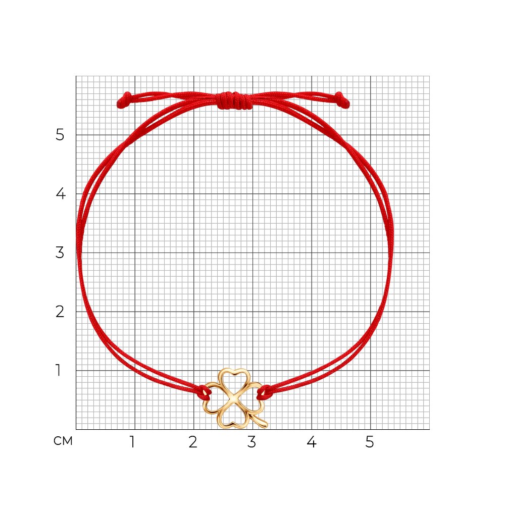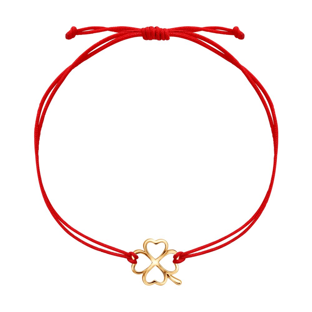 Браслет "красная нить" из золота "Клевер"