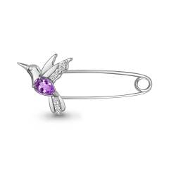 Брошь-булавка из серебра с аметистом и фианитами "Колибри"