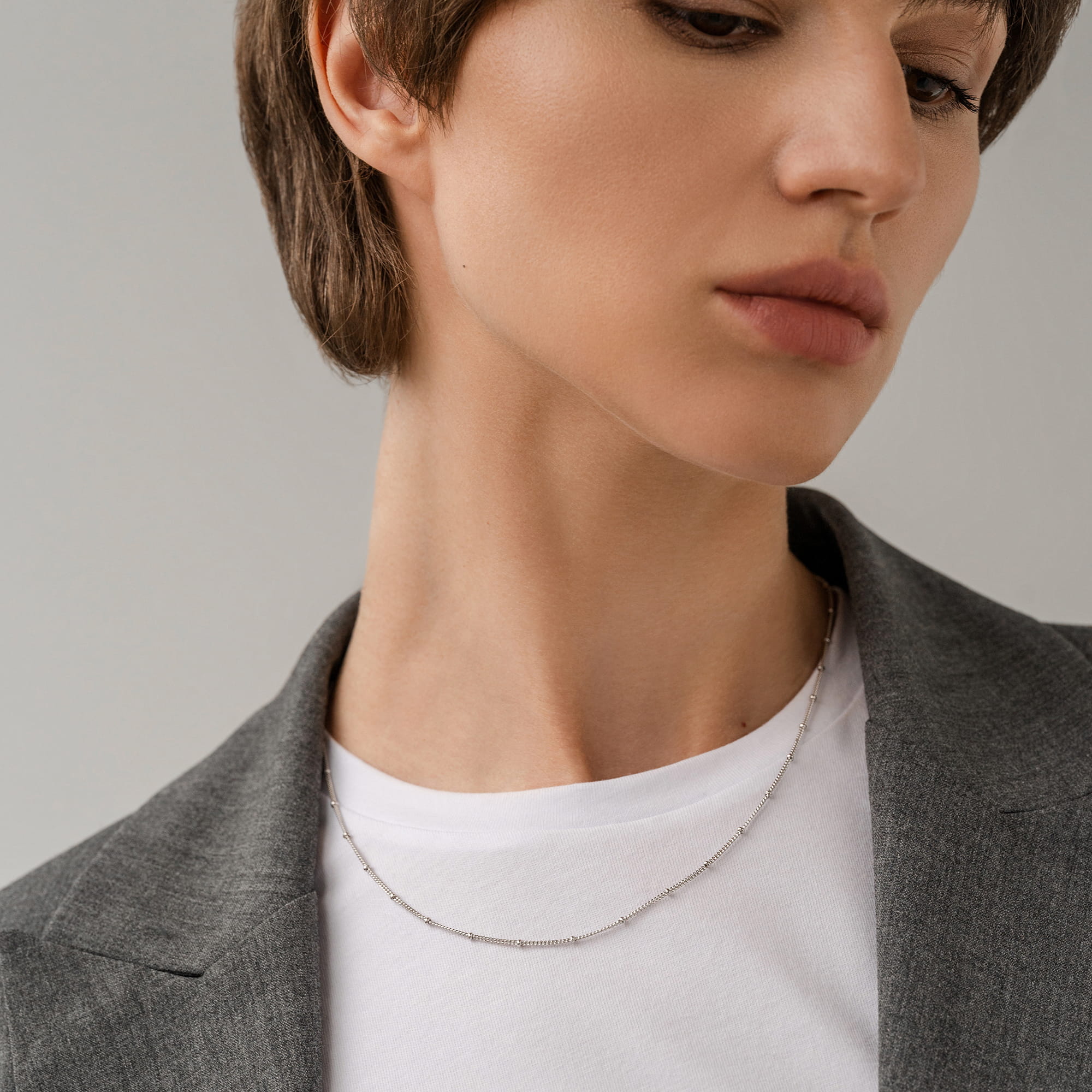 Цепь из белого золота плетения "Сатурна на гурмете"
