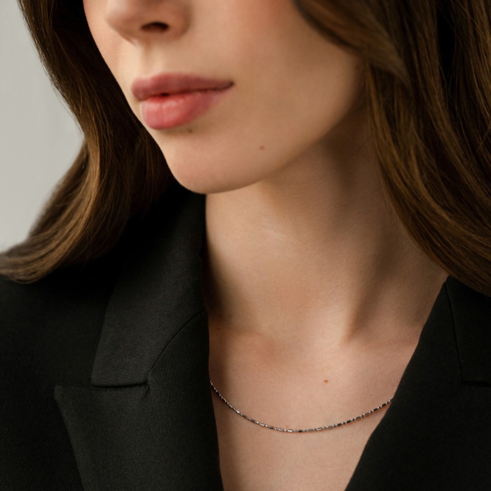 Цепь из белого золота плетения "Шарик-бочка"