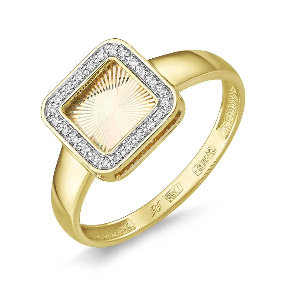 Кольцо из лимонного золота с алмазной гранью и бриллиантами