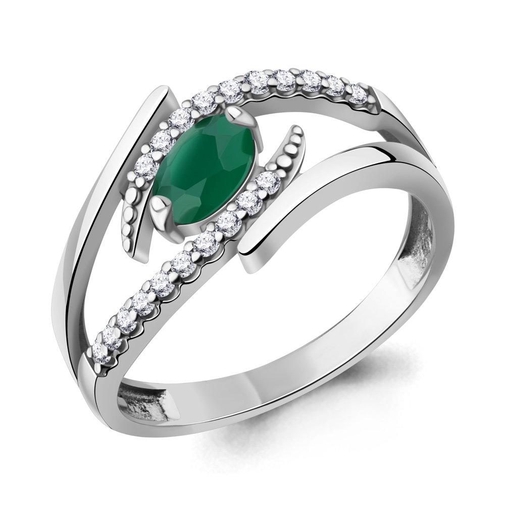 Кольцо из серебра с агатом и фианитами