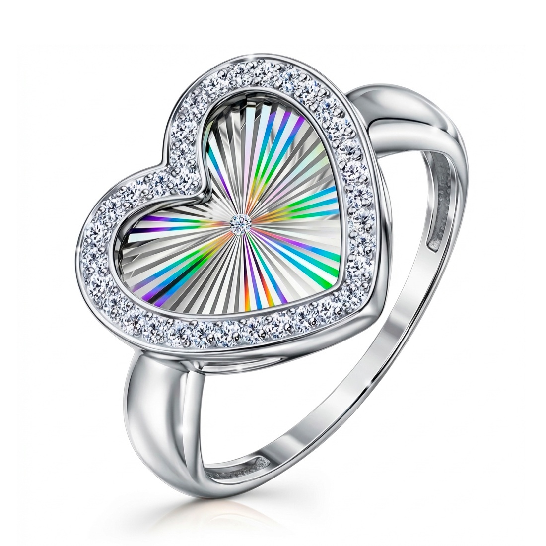 Кольцо из серебра с алмазной гранью и фианитами