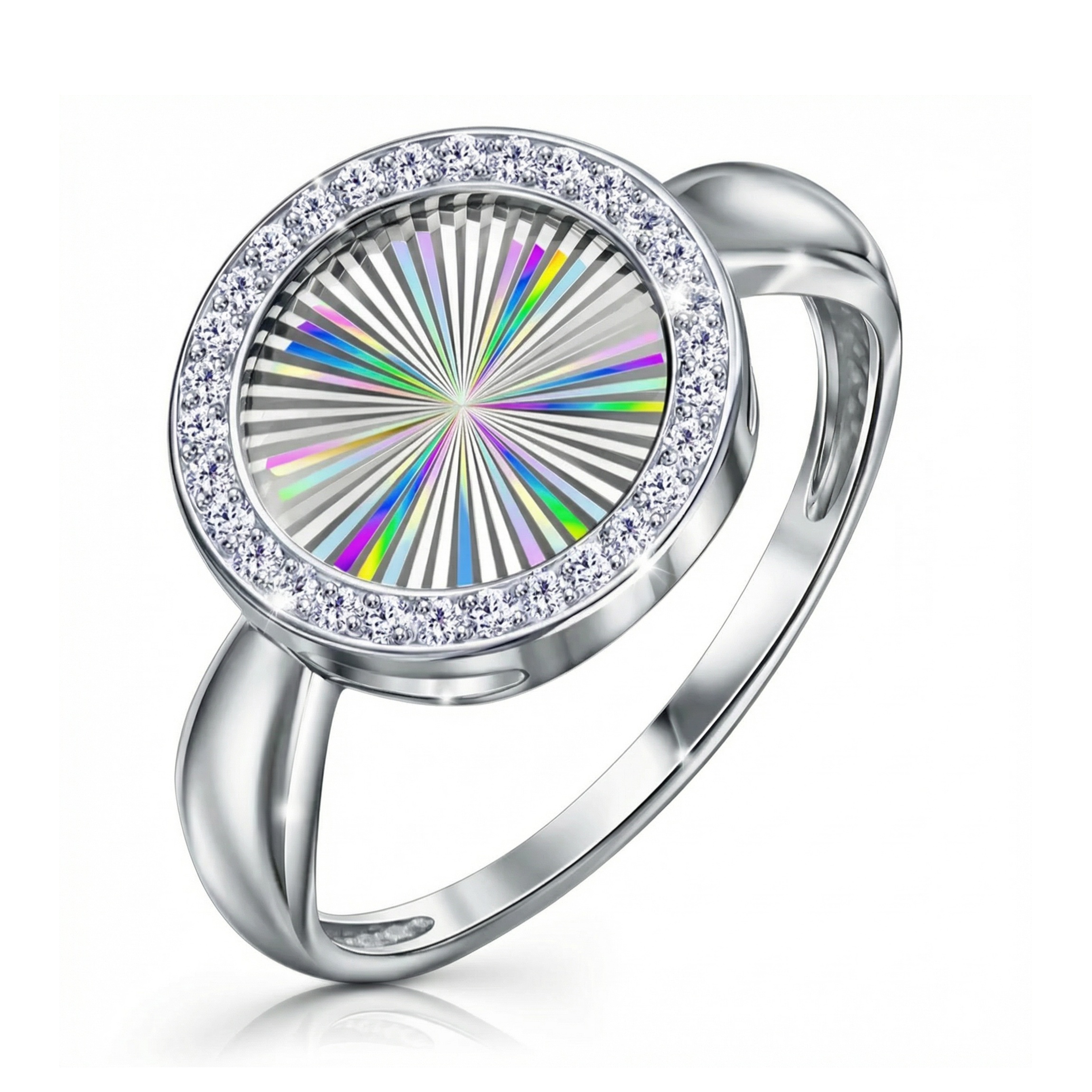 Кольцо из серебра с алмазной гранью и фианитами