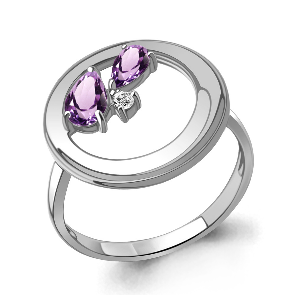 Кольцо из серебра с аметистами и фианитом