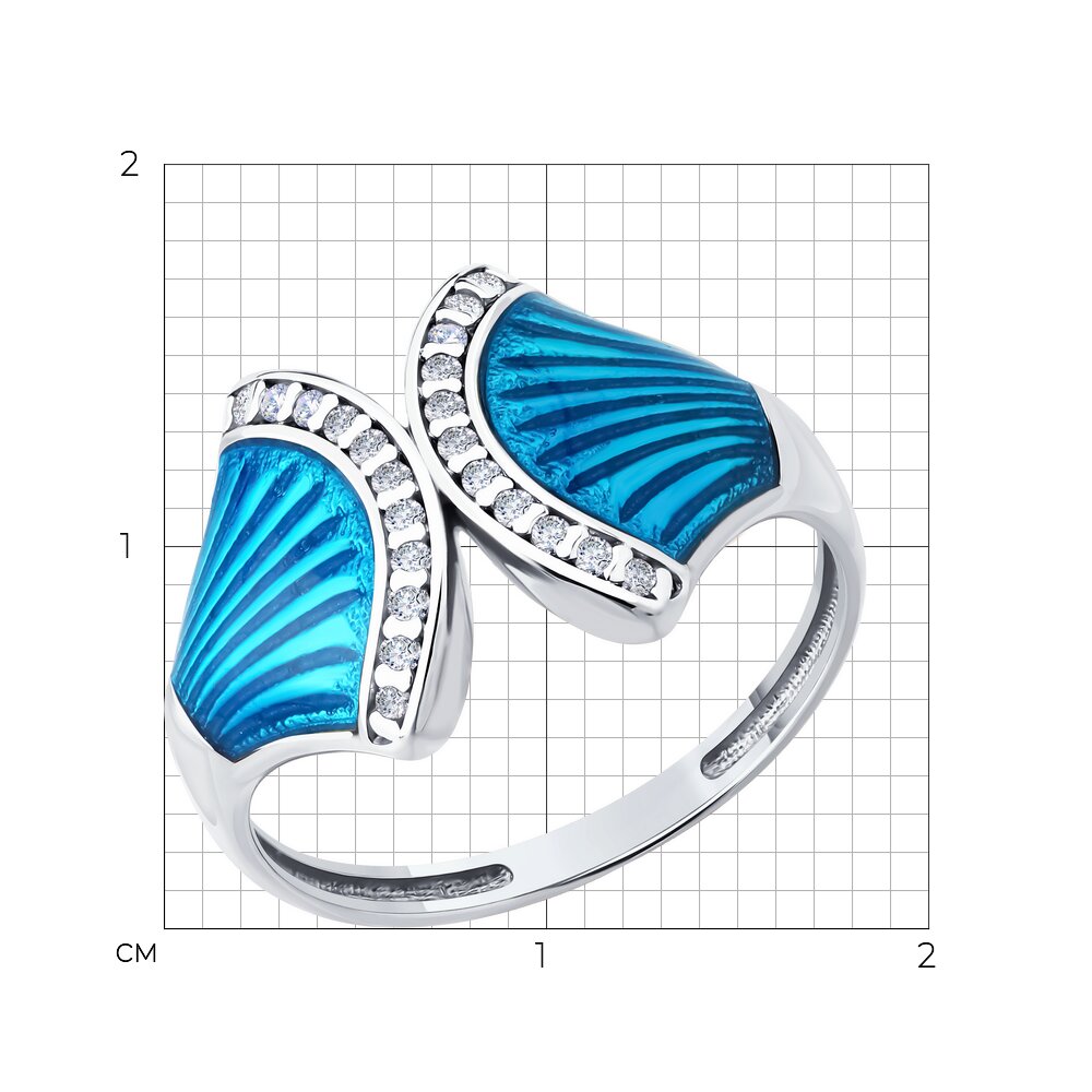 Кольцо из серебра с эмалью и фианитами